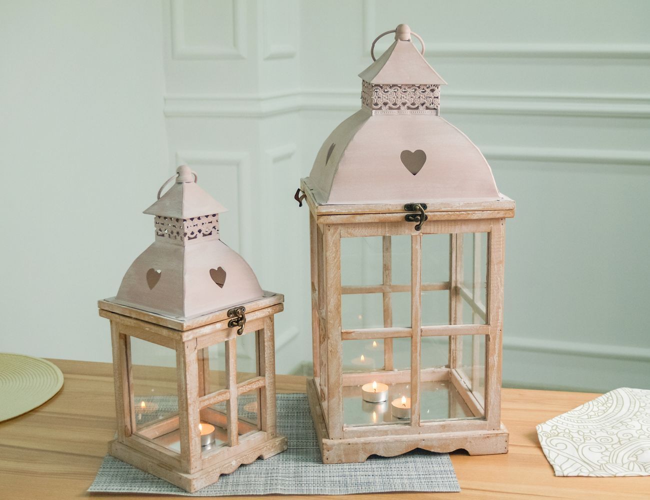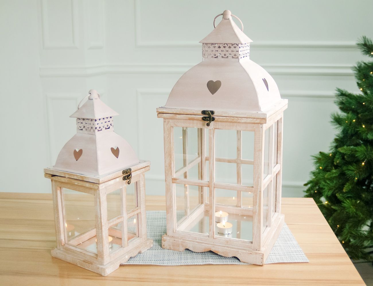 Набор подсвечников-фонарей ВАРМ ФРОЙДЕ, дерево, 55-38 см (2 шт.)