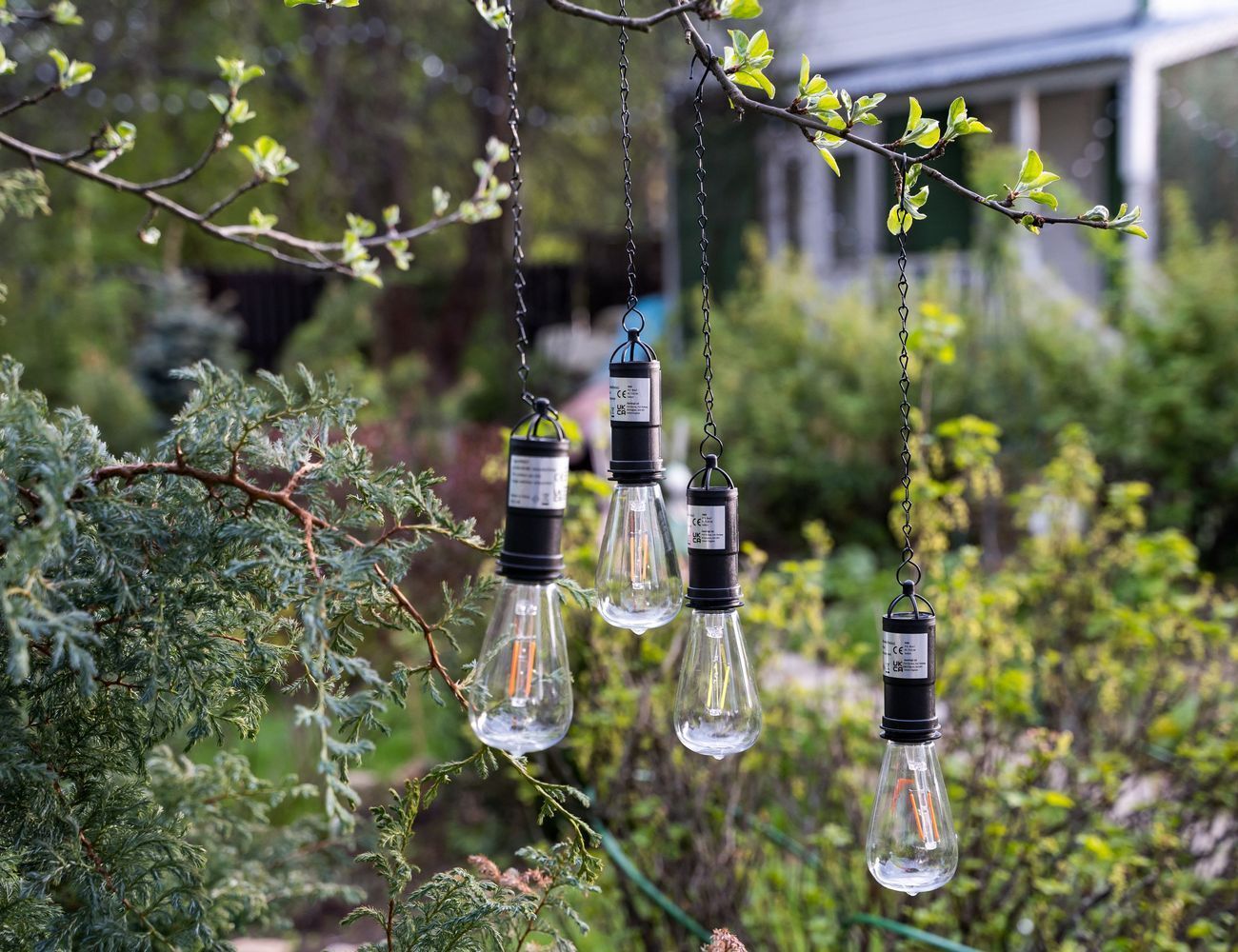 Оригинальный и очень эффектный солнечный светильник для стильного сада - Solar НЕОНОВОЕ РЕТРО жёлтого оттенка волшебно будет смотреться среди ветвей летним вечером! Впрочем, он станет и отличным украшением для беседки или веранды, а еще интереснее будет собрать комплект из таких светильников и разместить их мягко светящейся композицией, тем более, что благодаря удобной цепочке можно с лёгкостью регулировать длину подвеса - великолепный вариант подсветки!