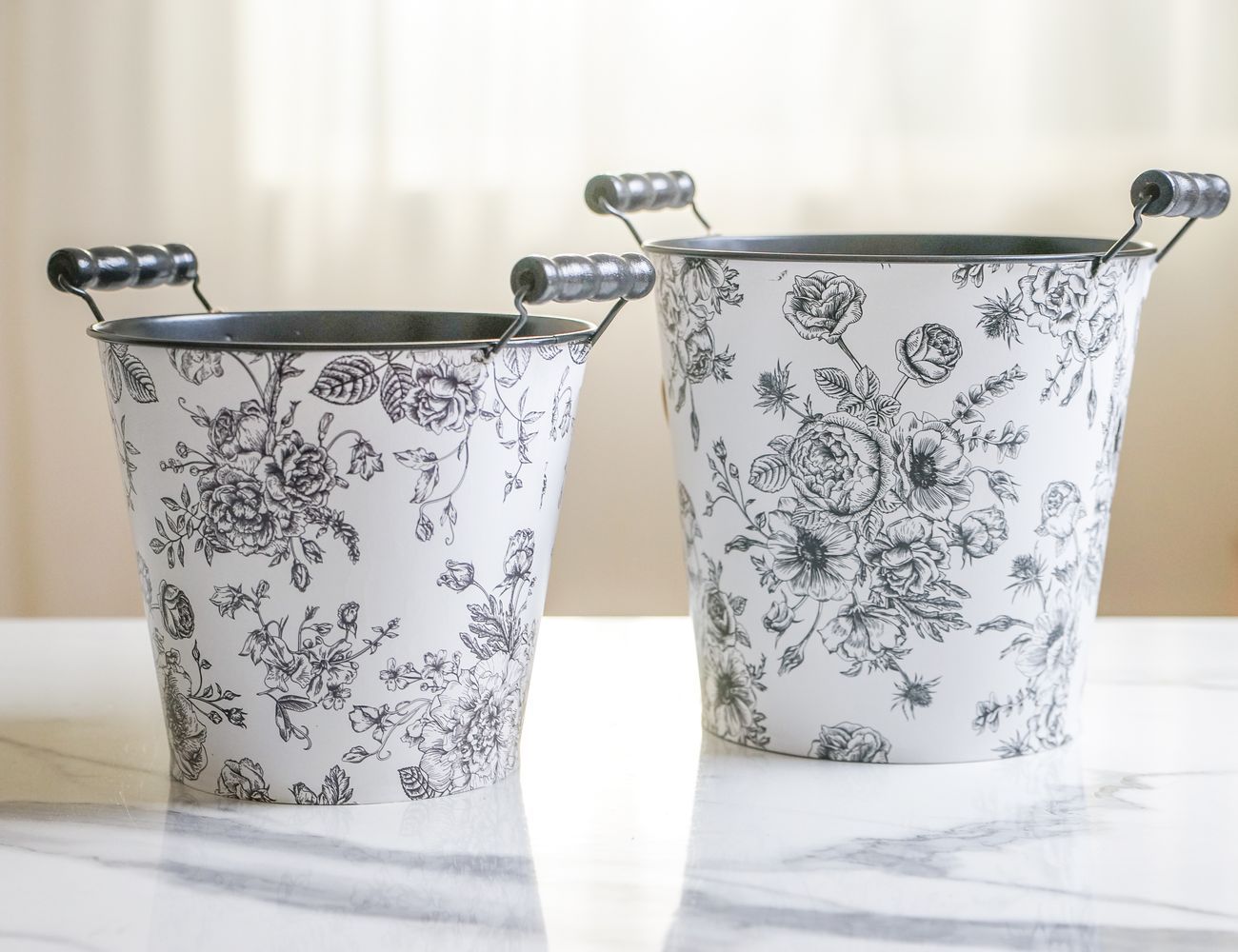 Изображение Металлическое кашпо-ведёрко SUMMER BOUQUETS, 16 см Металлическое кашпо-ведёрко SUMMER BOUQUETS, 19 см Металлическое кашпо-ведёрко SUMMER BOUQUETS, 22 см