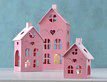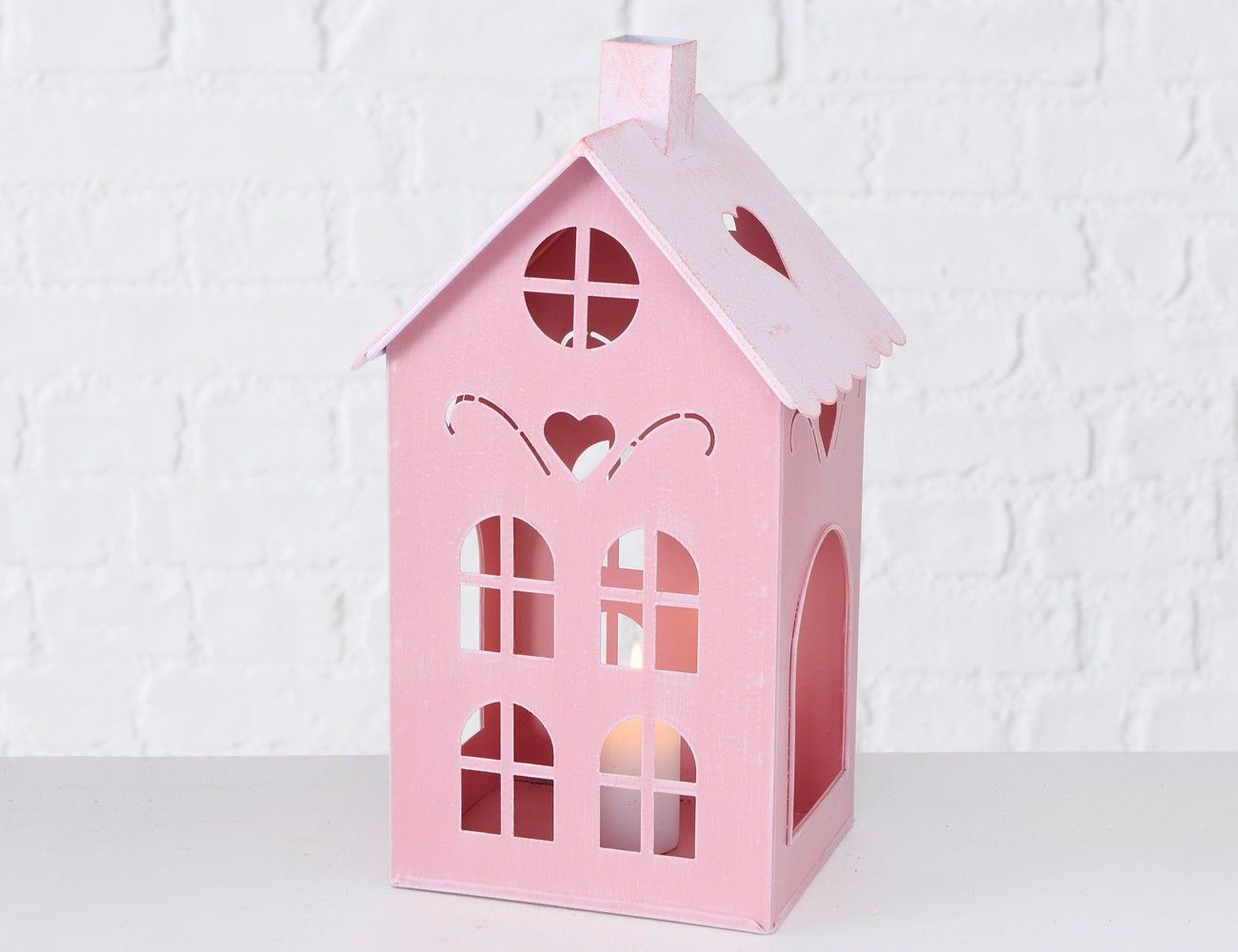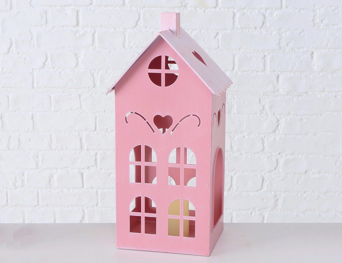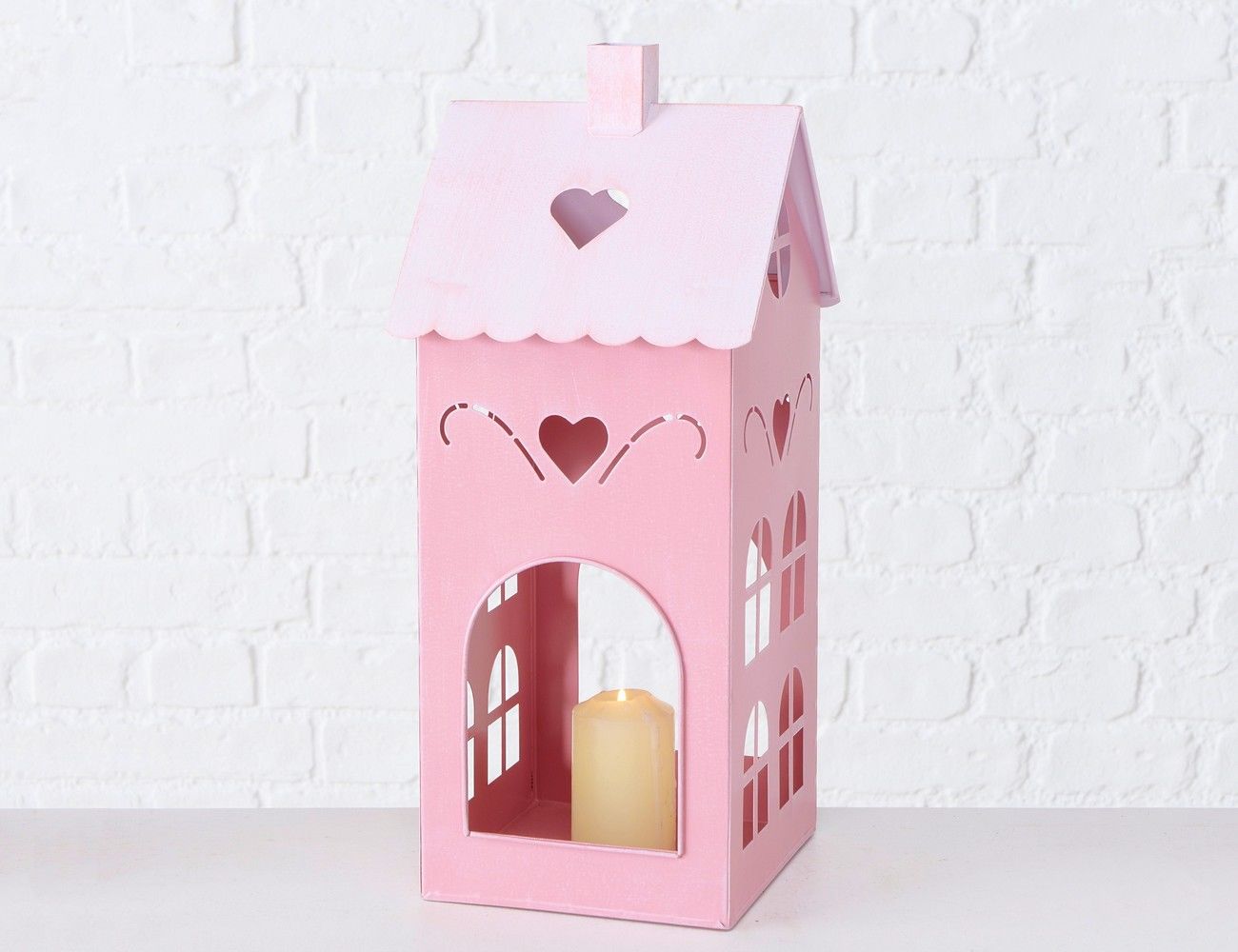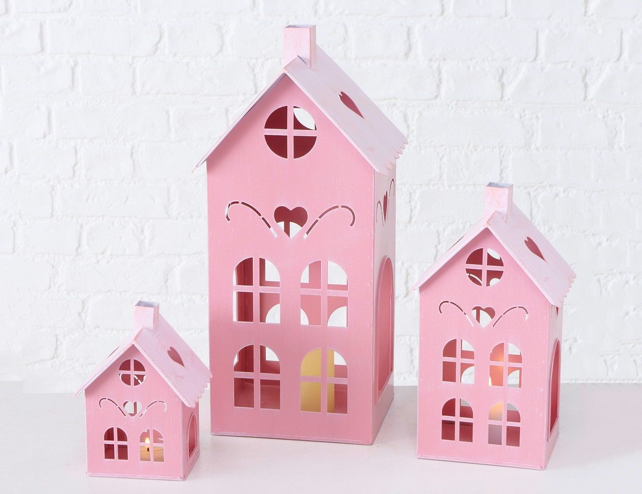 Подсвечники-домики КЮФШТАЙН металлические, розовые, комплект - 3 домика, 15-40 см