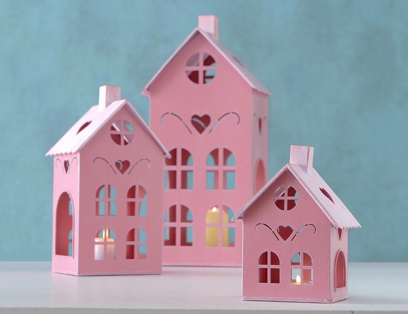 Товары для дачи и сада. Подсвечники-домики КЮФШТАЙН металлические, розовые, комплект - 3 домика, 15-40 см 2003807-set. IntexCorp - интернет магазин.