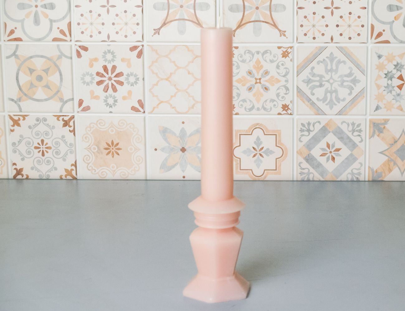 Декоративная свеча АНТИЧНОЕ ИЗЯЩЕСТВО с гранёным основанием, нежно-розовая, парафин, 25 см