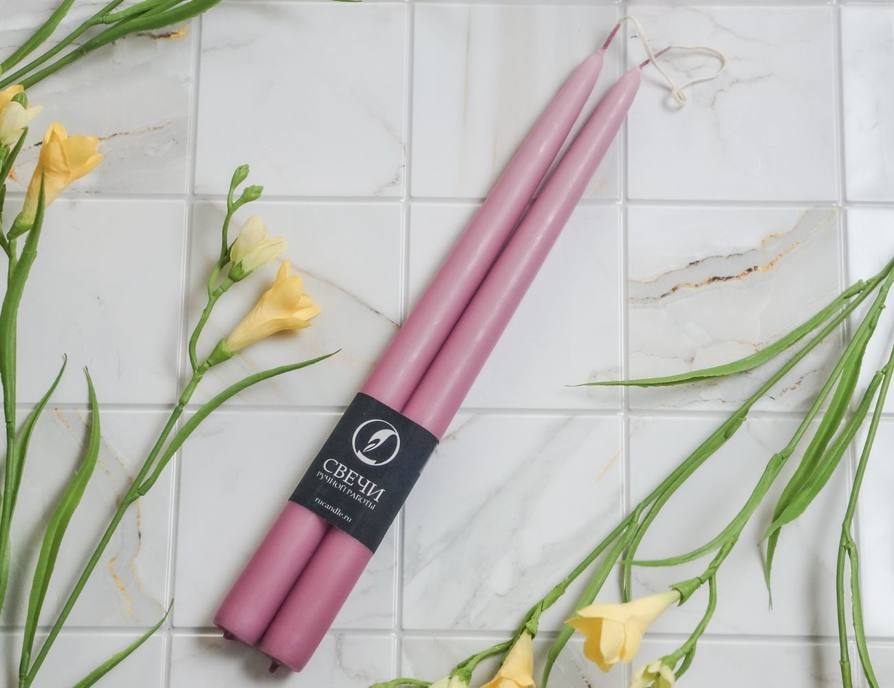 Свечи античные ручной работы розовые, 2.3х30 см (упаковка 2 шт.)