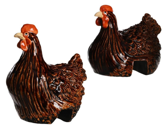 Керамические фигурки КУРОЧКИ НАСЕДКИ, тёмно-коричневые, 17-19 см, 2 шт.