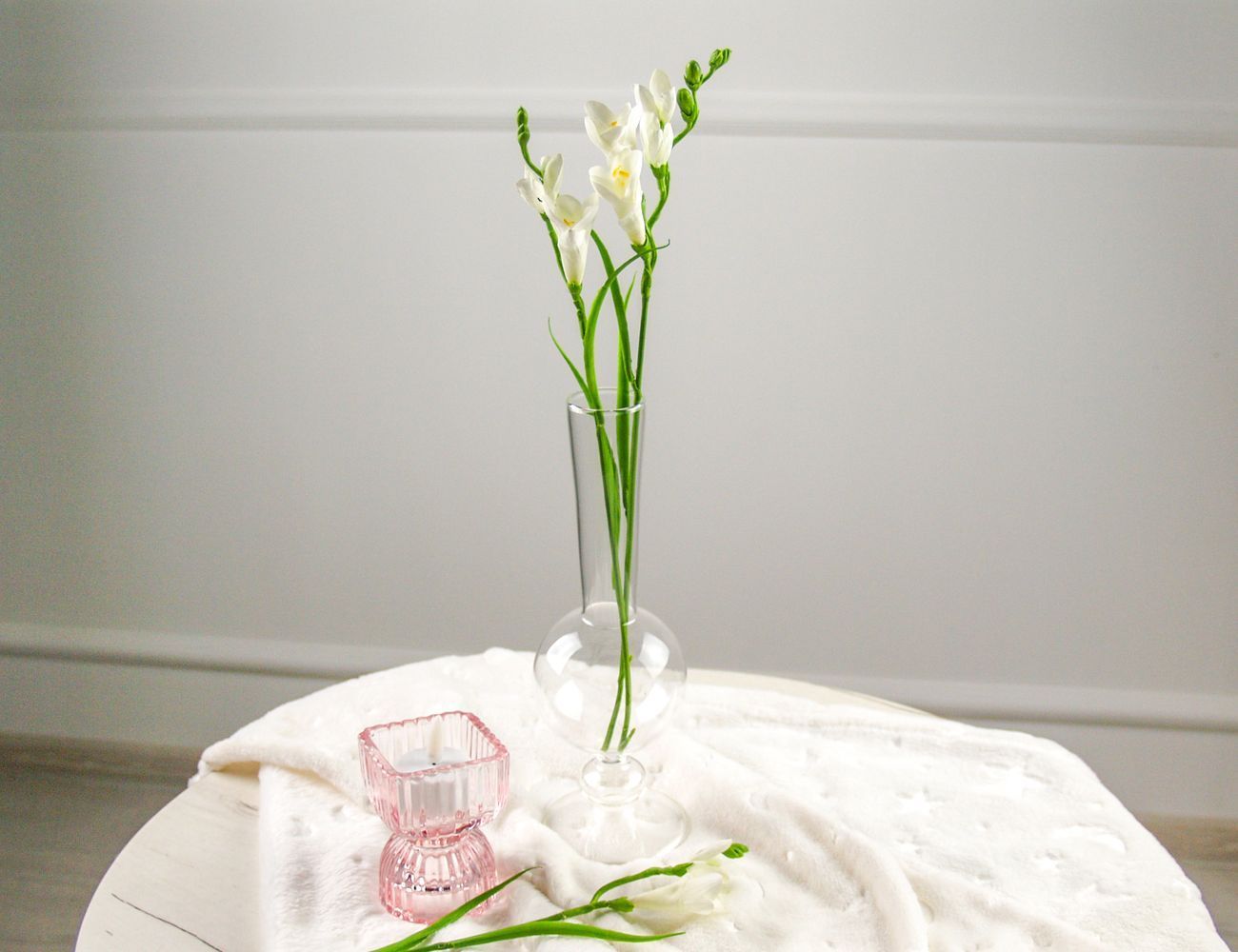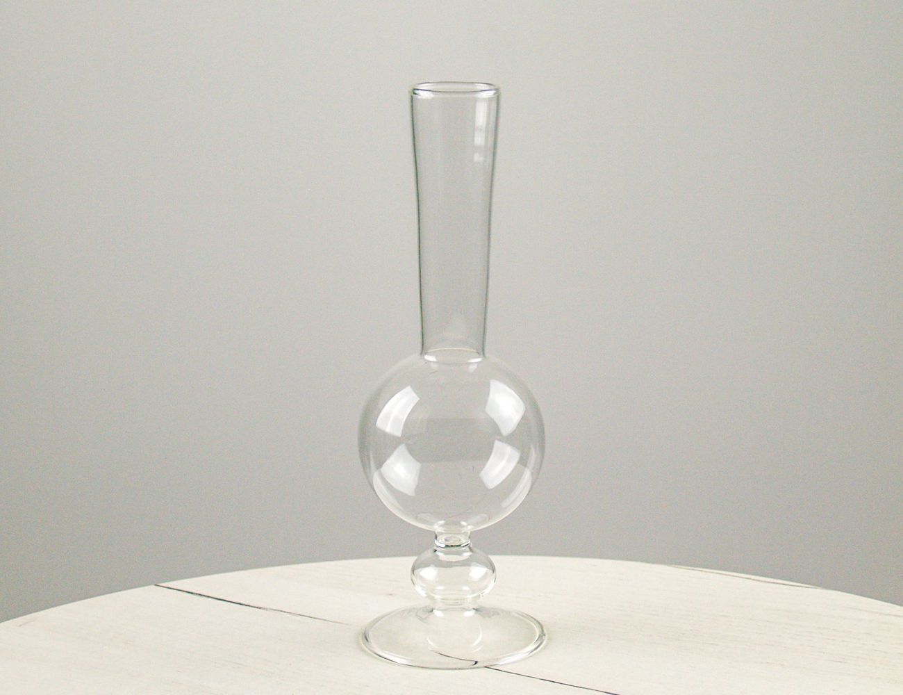 Порой бывает, что один-единственный прекрасный цветок или удивительная ветка требуют персонального оформления, но обычная ваза оказывается слишком просторной, маленькая вазочка слишком низкой, а разные бокальчики слишком лёгкими и неустойчивыми… Очень эстетичное и элегантное решение - округлая, совершенно прозрачная ваза, специально созданная именно для таких случаев! Устойчивая, достаточно вместительная для воды и при этом словно наполненная чистым воздухом, она надолго сохранит красоту цветка и послужит ему достойным обрамлением.