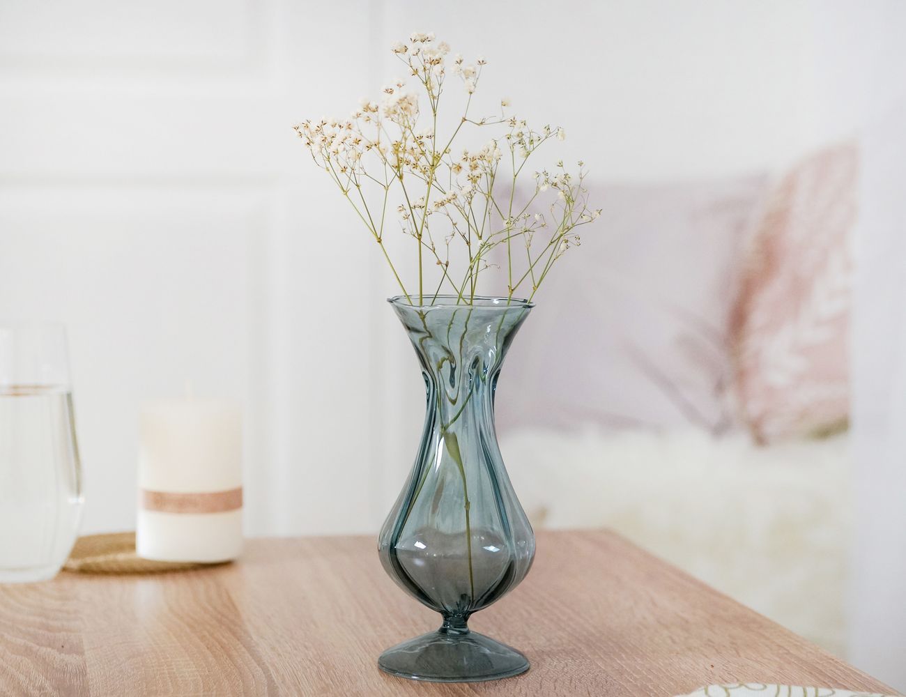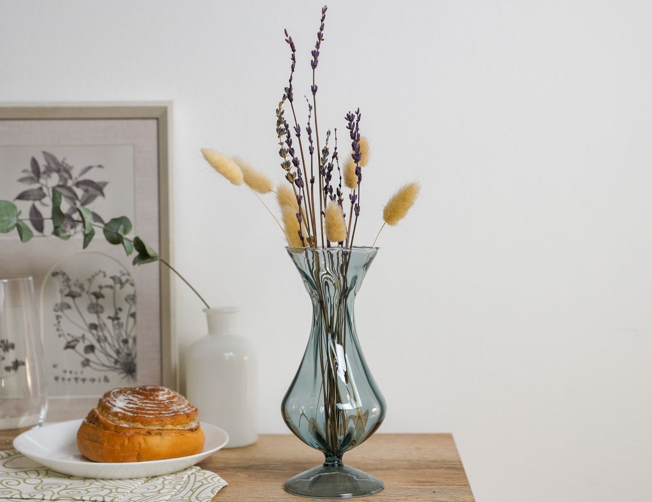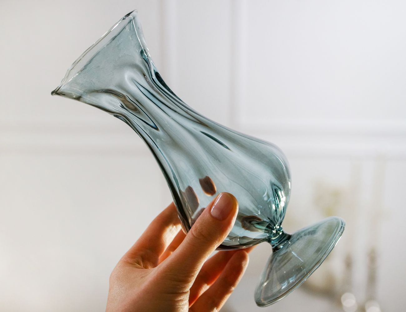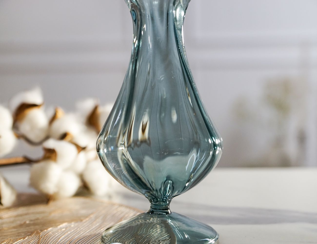Невероятно изящная, лёгкая, тонкая, словно воздушная, мягко преломляющая свет в серо-голубом стекле, вазочка 'Эварист' будет идеальным обрамлением для яркого букетика цветов, осенних листьев и любой декоративной композиции.
