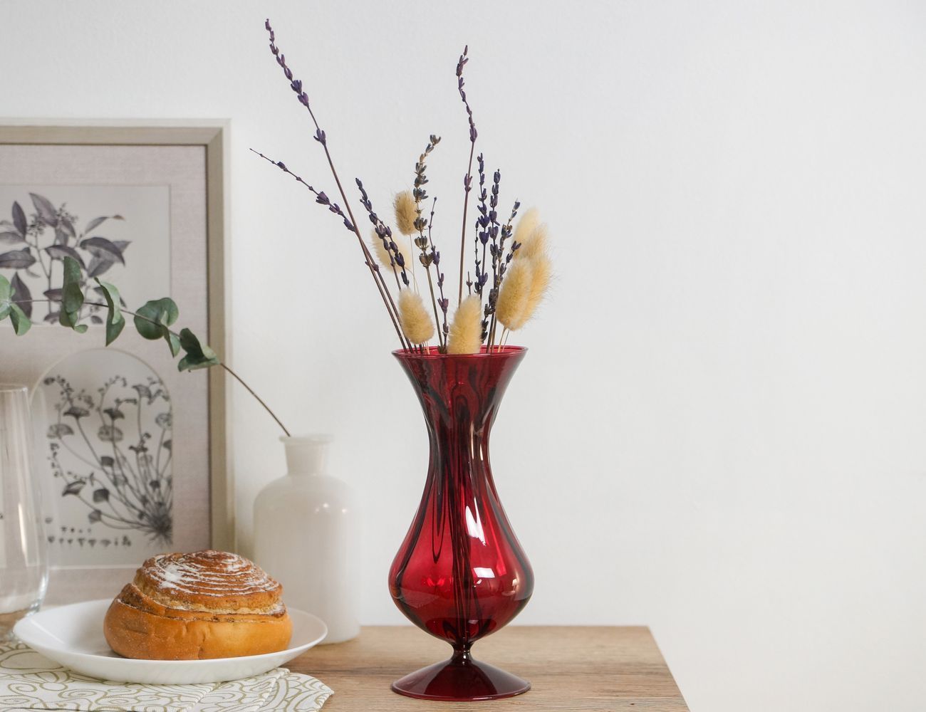 Невероятно изящная, лёгкая, тонкая, словно воздушная, чудесно преломляющая свет в сочном красном стекле, вазочка 'Эварист' будет идеальным обрамлением для букетика цветов, осенних листьев и любой декоративной композиции.