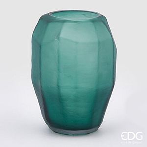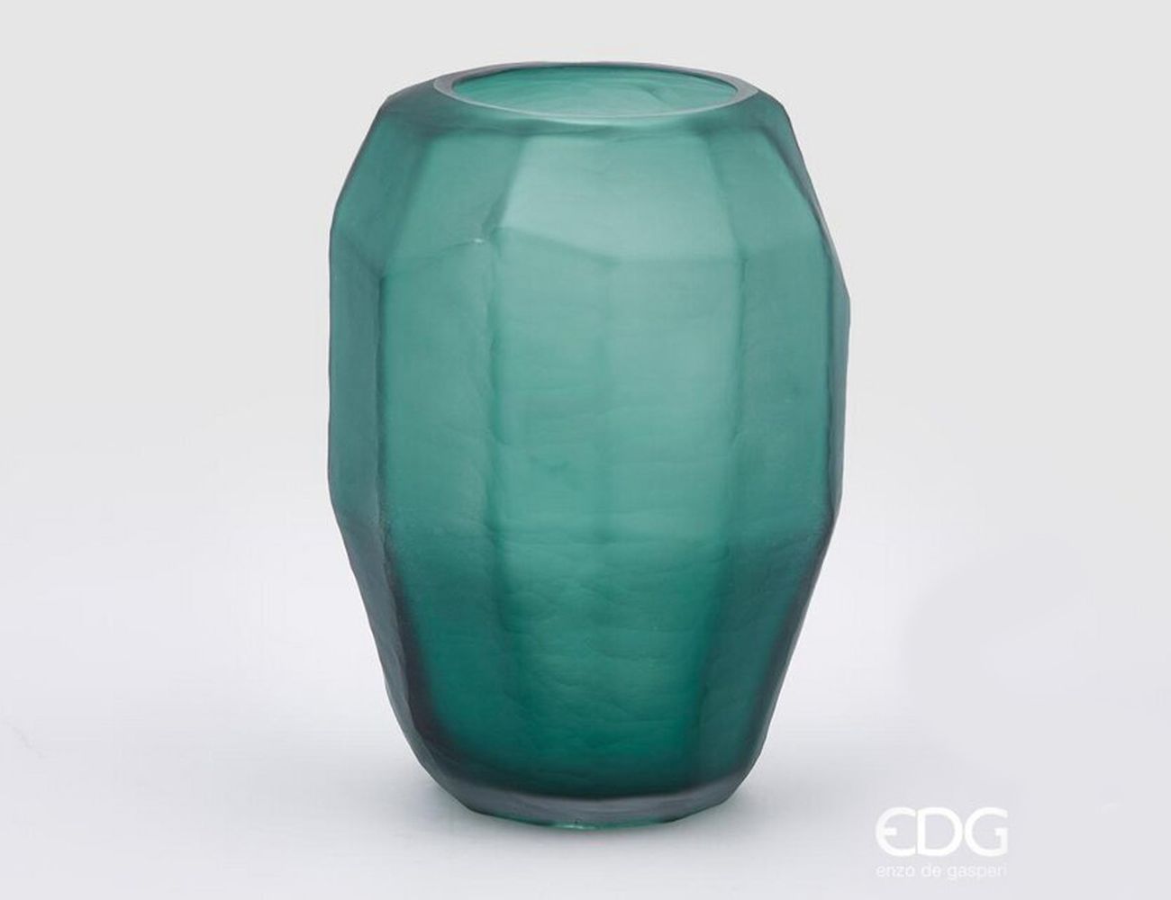 Стеклянная ваза МЯГКАЯ ИГРА ГРАНЕЙ, зелёная, 28 см