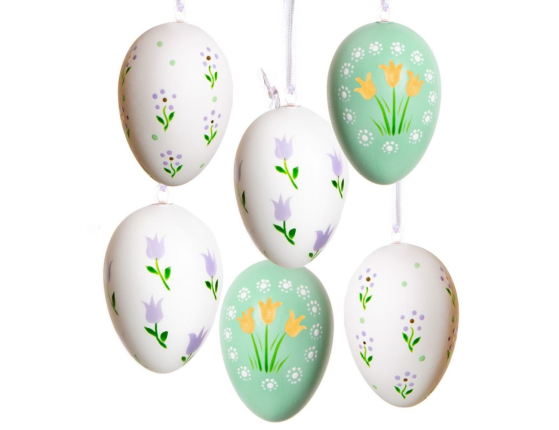 Декоративные пасхальные яйца ТЮЛЬПАНОВОЕ УТРО в голубых тонах, пластик, 6 см, 6 шт., подвески