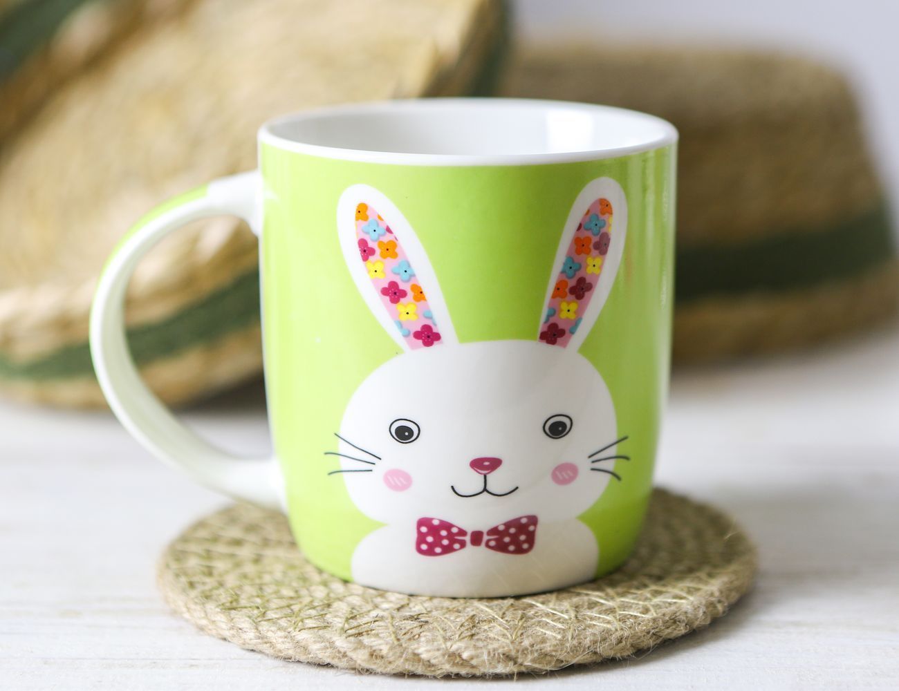 Изображение Фарфоровая чашка КРОЛЬЧОНОК ДЖЕНТЛЬМЕН, 370 мл Фарфоровая чашка КРОЛЬЧОНОК ЦВЕТИК, 370 мл Фарфоровая чашка РУМЯНЫЙ ЦЫПЛЕНОК, 370 мл Фарфоровая чашка ПАСХАЛЬНЫЙ ЦЫПЛЕНОК, 370 мл