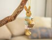 Подвесное украшение ЗАЙЧИШКА С КОРЗИНКОЙ ЦВЕТОВ в голубой рубашке, полистоун, 9 см