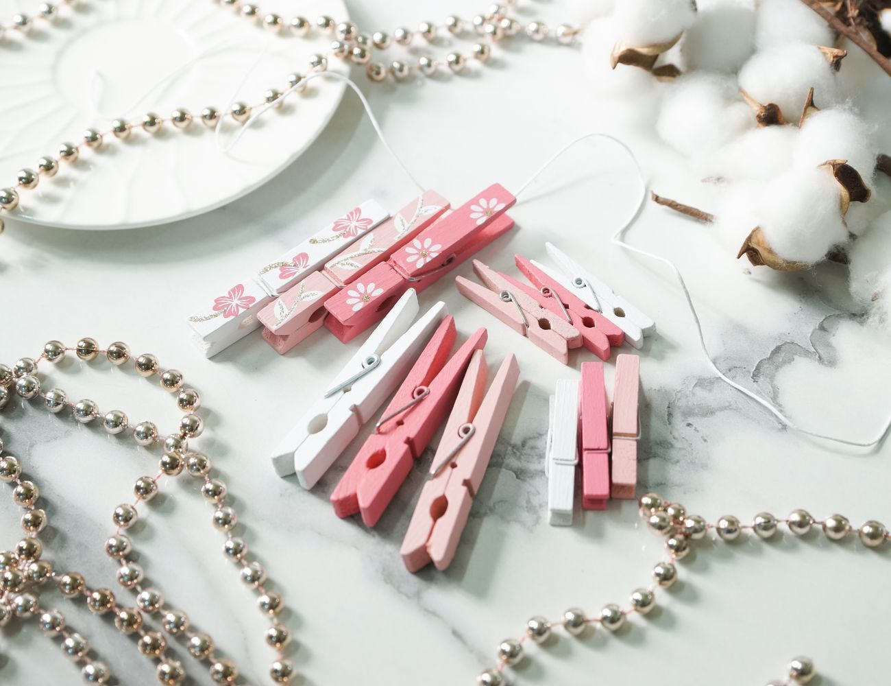 Декоративные прищепки ЦВЕТУЩАЯ ВЕСНА, дерево, розовые, 5-8 см, 12 шт