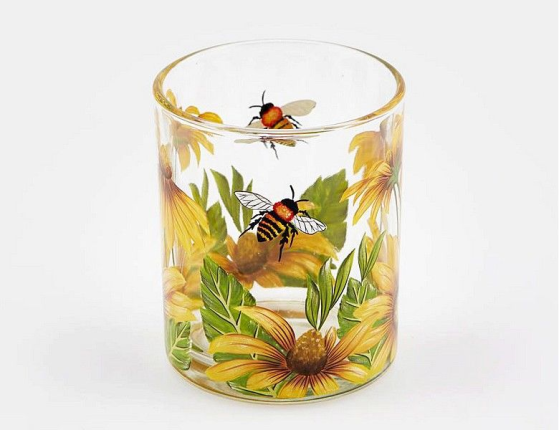Бывают вещи простые, утилитарные, а бывают те, что удивительным образом сочетают в себе будничную практичность и необыкновенную красоту. Именно таков стеклянный подсвечник с чудесным рисунком, где кажется слышным жужжание пчёл, старательно перебирающихся с цветка на цветок... Даже без свечи он, словно маленькое произведение искусства, не оставит созерцателей равнодушными, а вечером украсит пространство удивительными картинками!