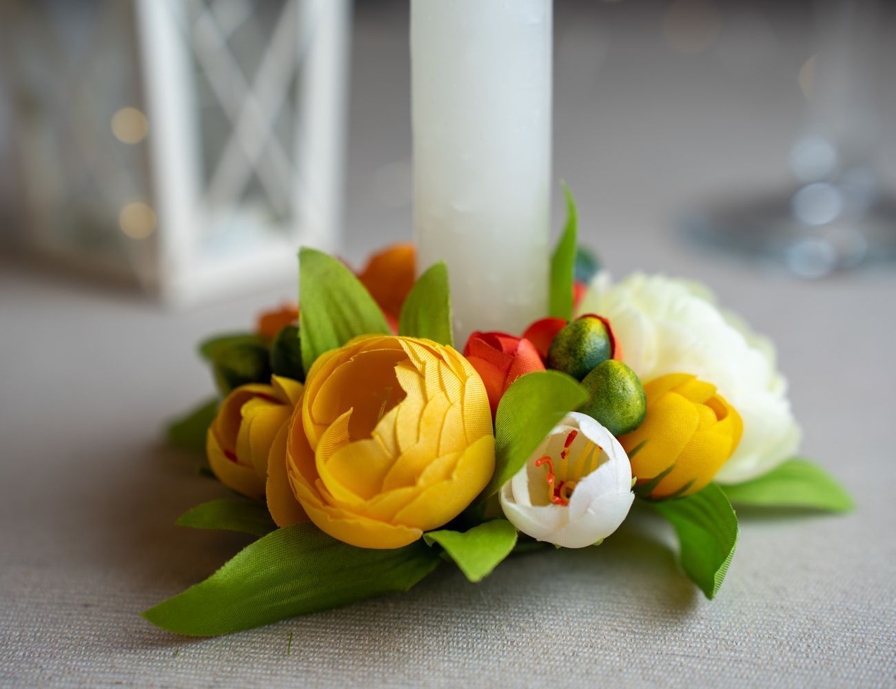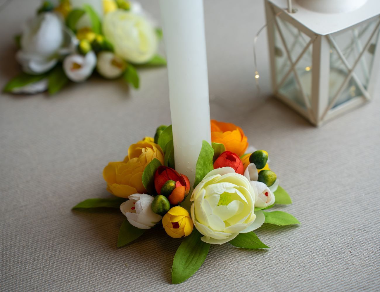 Пасхальная коллекция. Венок для свечи САДОВЫЕ ЛЮТИКИ, оранжевый, 12 см 214844-95-2. IntexCorp - интернет магазин.