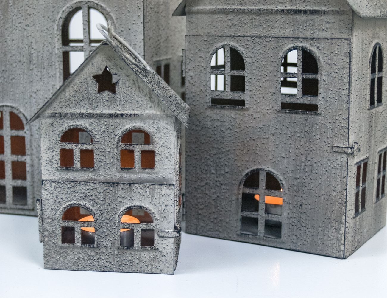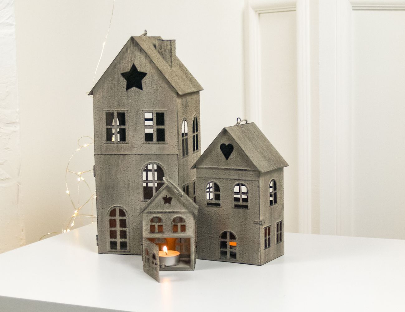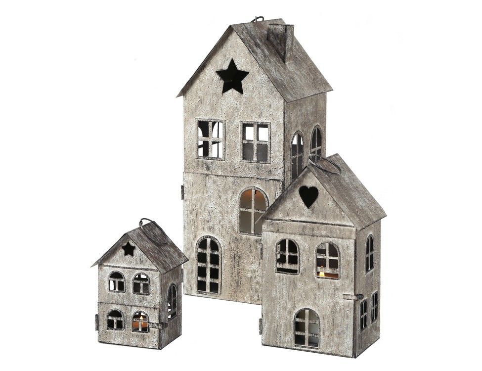 Набор новогодних подсвечников-домиков В ГОСТЯХ У СКАЗКИ, металл, 12-34 см, 3 шт.