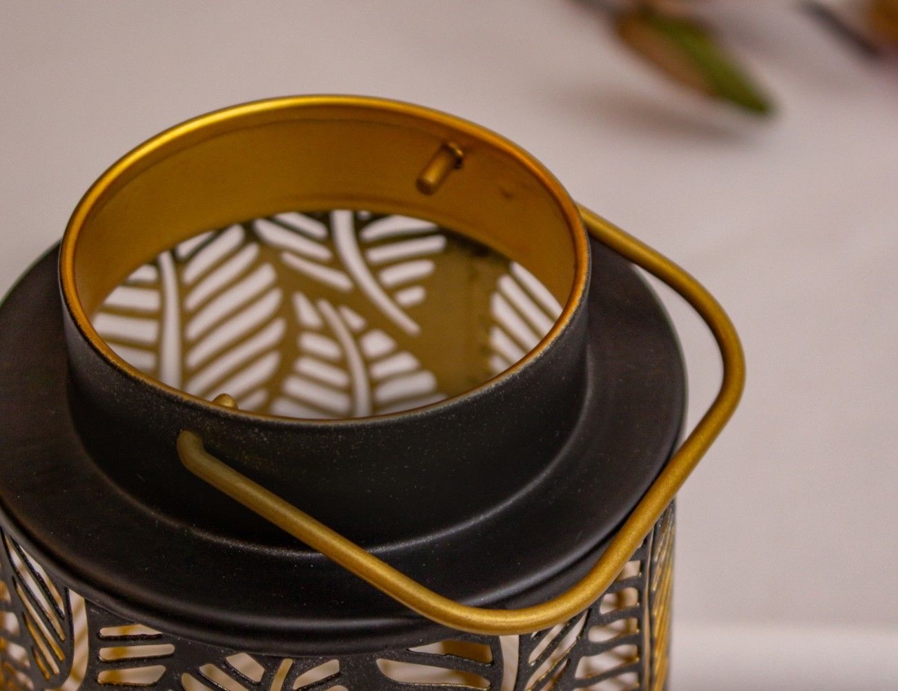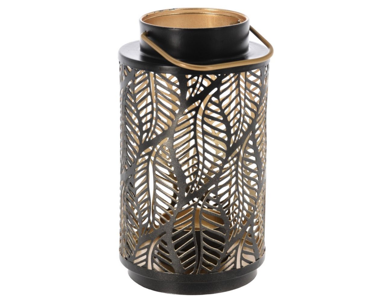 Подсвечник фонарик КРУЖЕВО ЛИСТВЫ, металл, черный, 16 см
