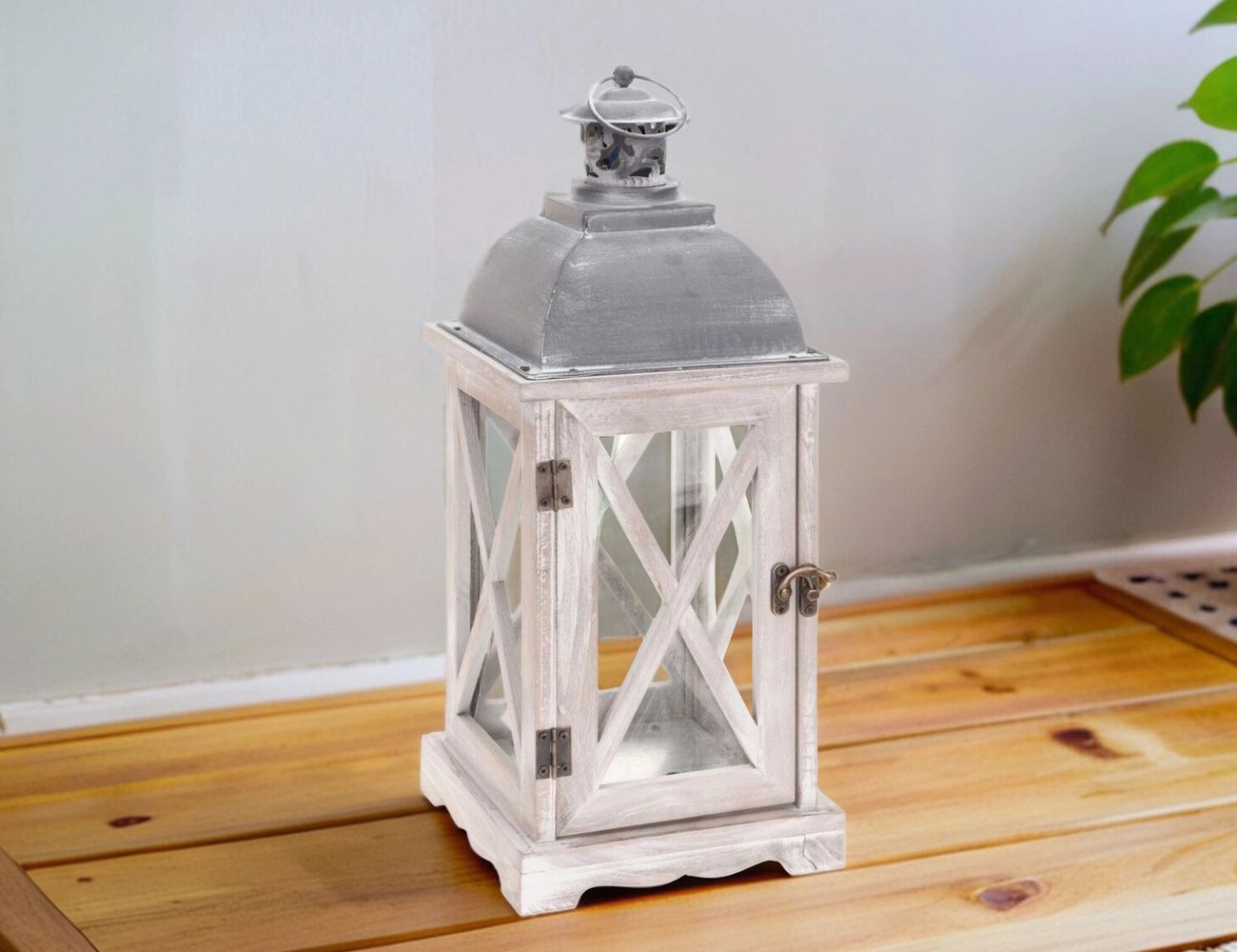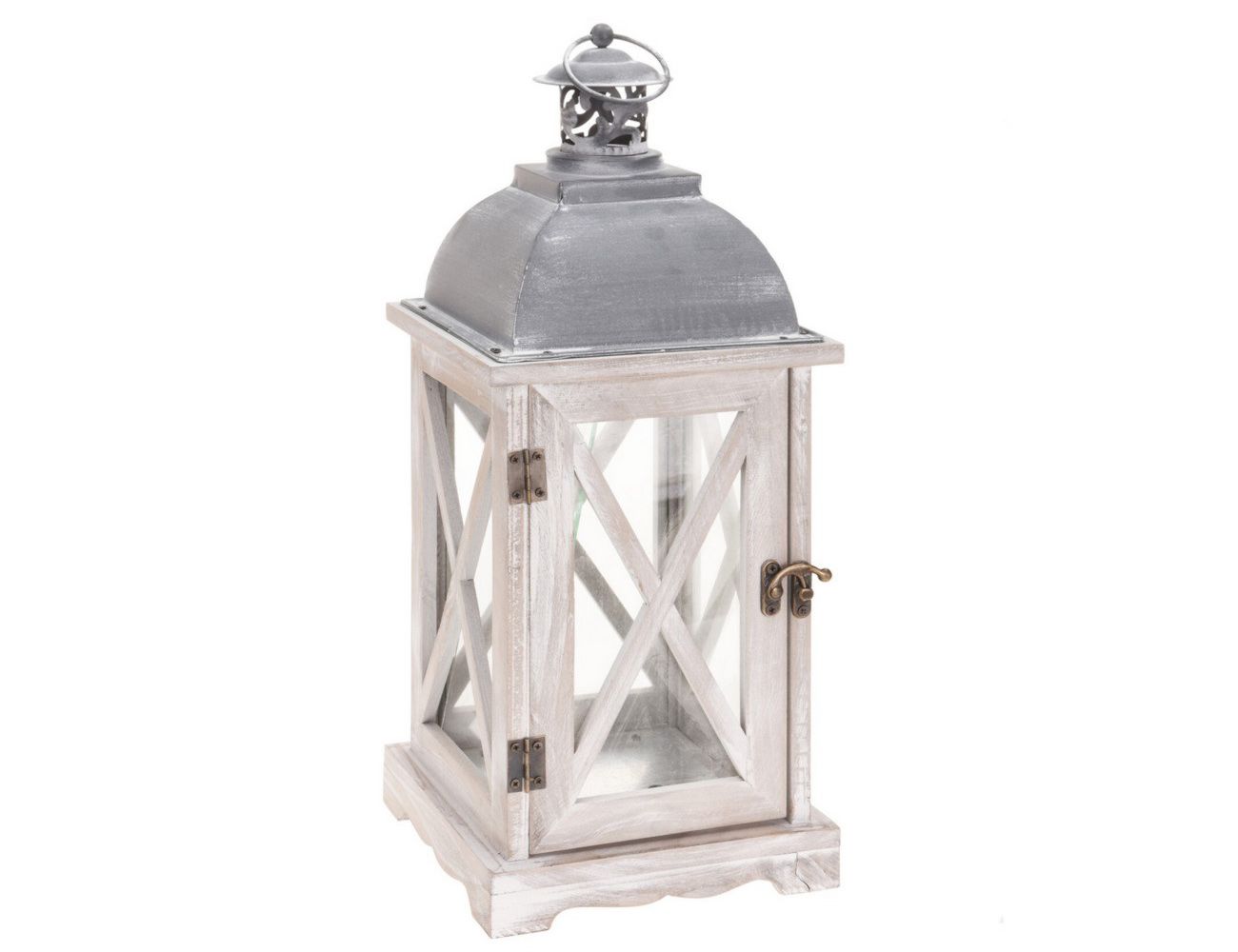 Товары для дачи и сада. Подсвечник фонарь ТОНГЕРЕН, дерево, белый, 41 см CAT300030-3. IntexCorp - интернет магазин.