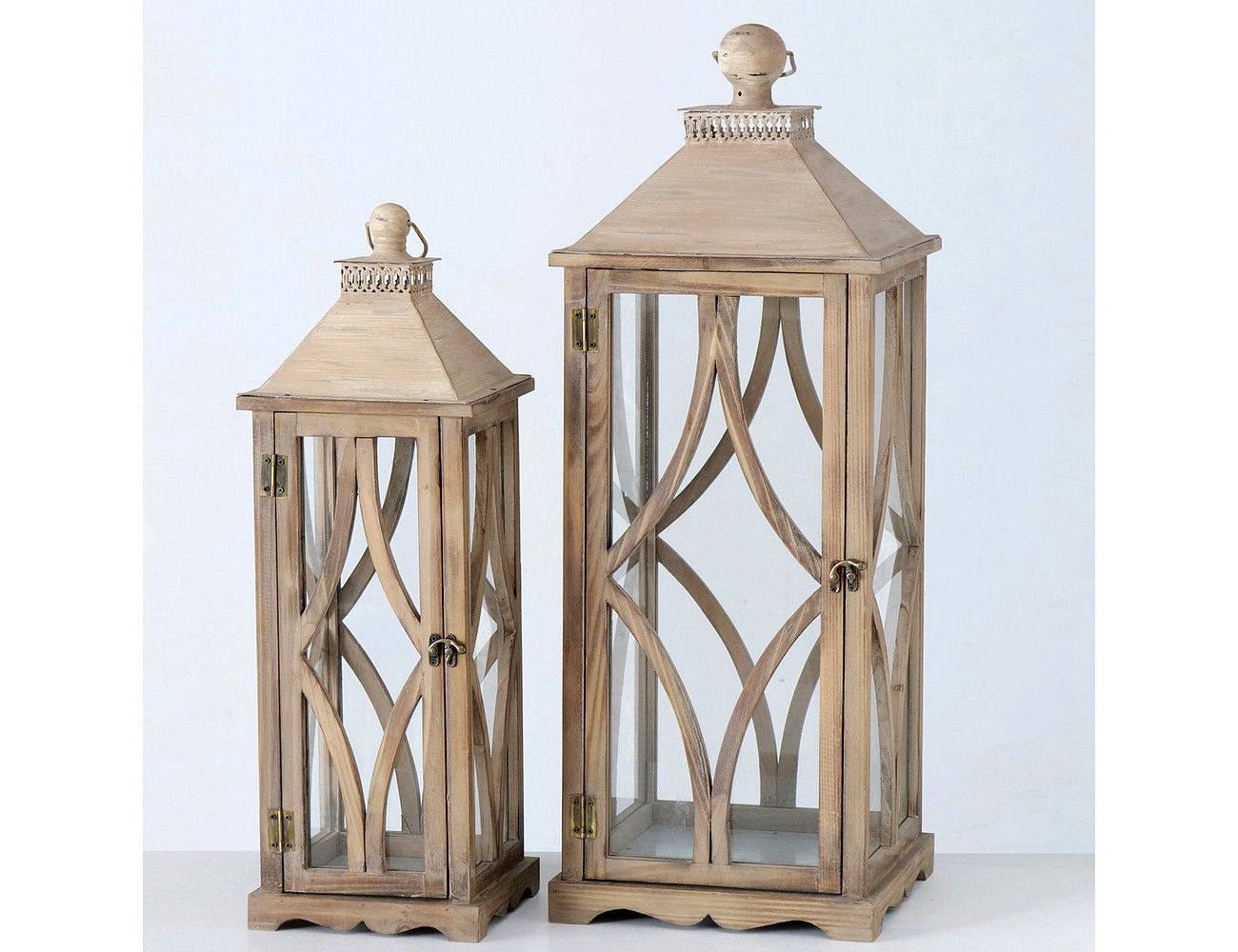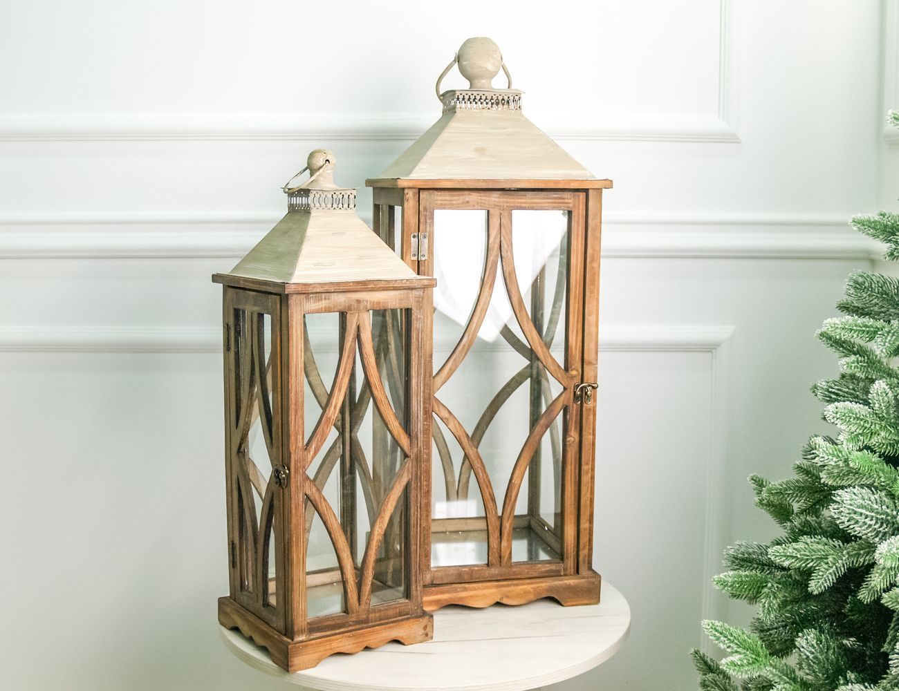 Набор подсвечников-фонарей ЯСЕНЕВЫЕ ДОМИКИ, дерево 35-50 см, 2 шт.