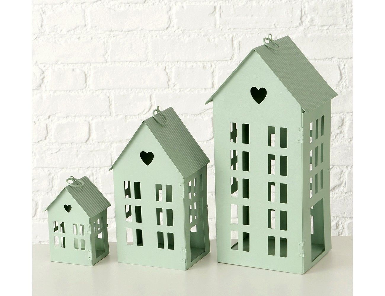Набор подсвечников СЕРДЕЧНЫЕ ДОМИКИ, металл, зеленый, 13-35 см, 3 шт.
