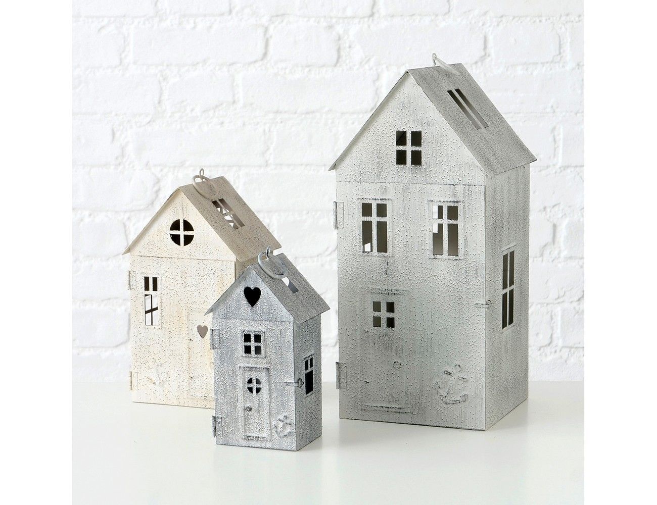 Притягательные домики-подсвечники Костьеро с интересной неоднородной структурой, напоминающей иней от влажного морского воздуха в зимний период. На этих милых домиках изображены якоря, которые навевают воспоминания об очаровании прибрежных городков.