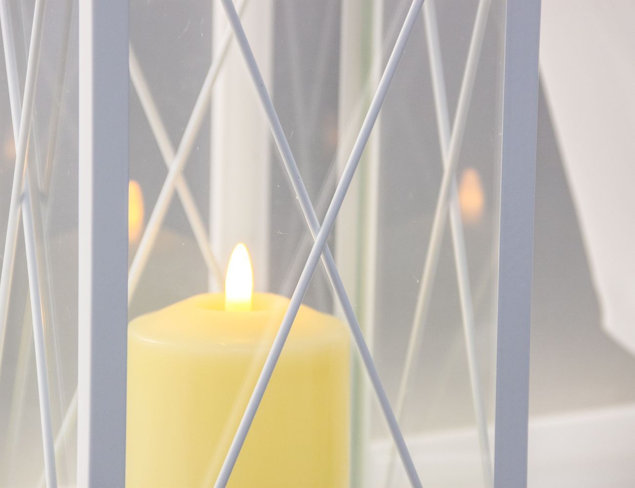 Стильный и лаконичный подсвечник-фонарь ослепительно белого цвета прекрасно впишется в минималистичные интерьеры. В нем ничего лишнего, в качестве декора только перекрестия на прозрачном стекле - лаконично и очень стильно!