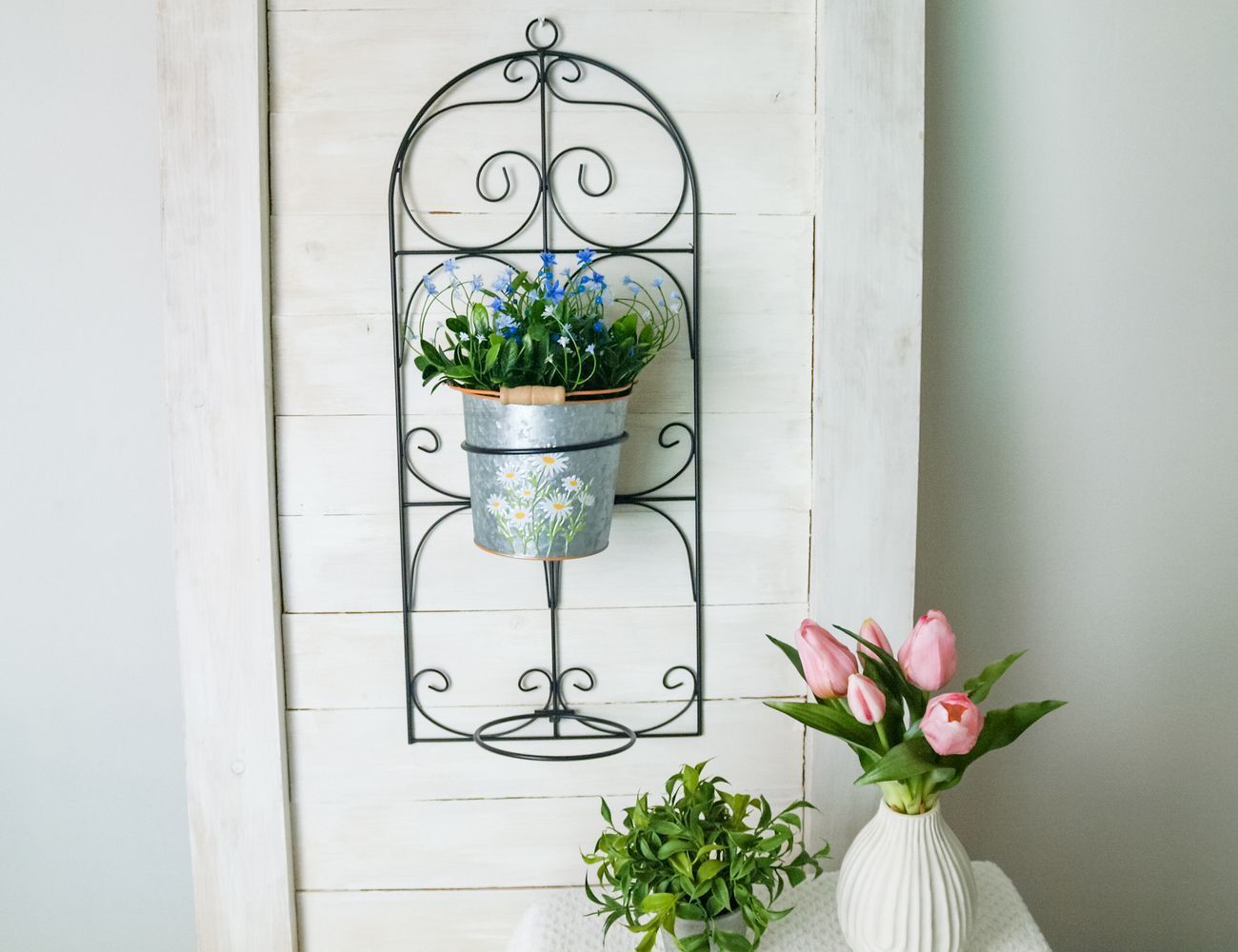 Кто сказал, что подоконник - единственное подходящее место для комнатных растений? Вовсе нет! И дизайнеры придумали замечательно решение, которое станет настоящей изюминкой любого интерьера: закрепите на стене великолепную кованую подставку, установите в раскладных держателях кашпо подходящих размеров и наслаждайтесь красотой! Вы можете менять растения, всякий раз придавая интерьеру новое звучание.