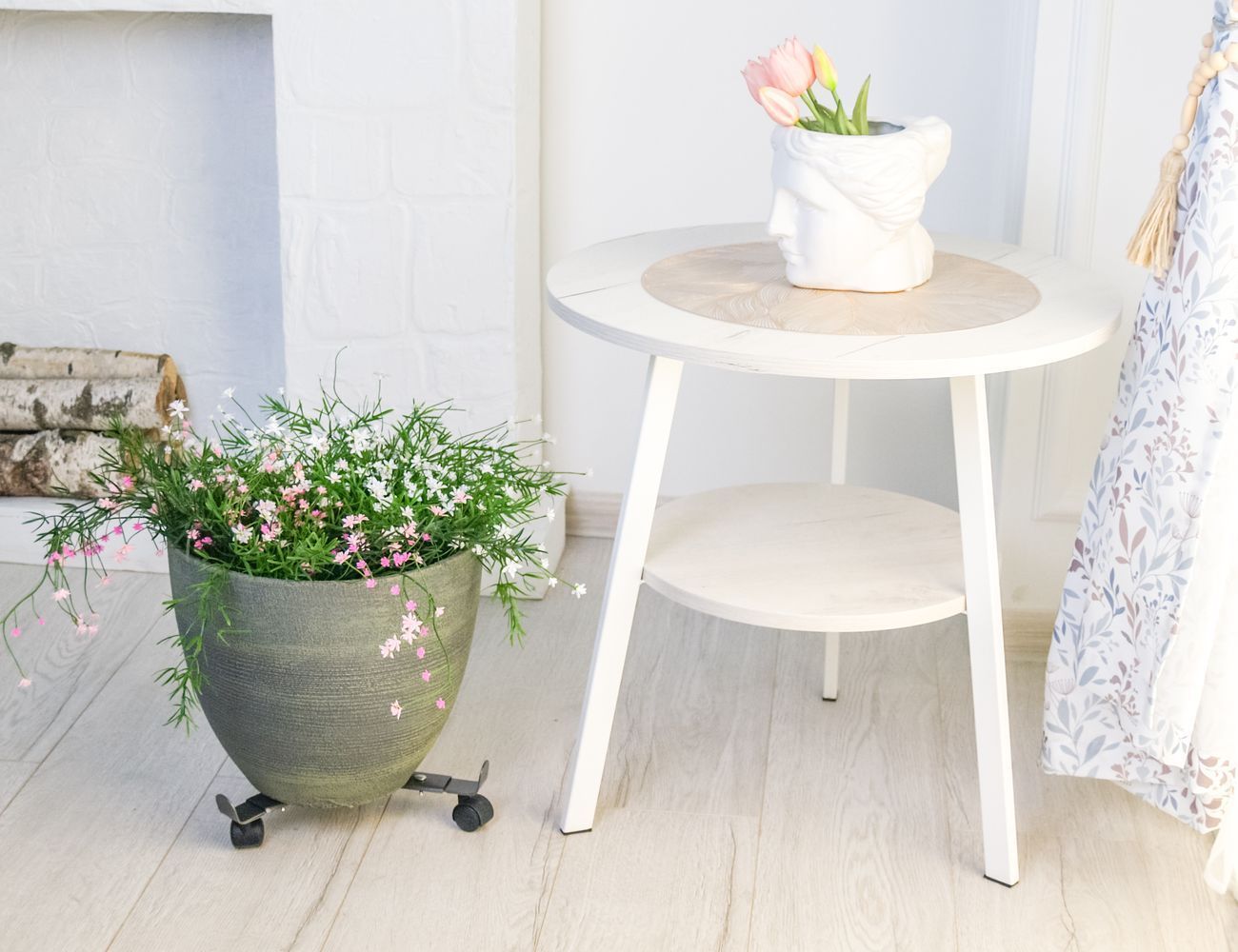 Подставка для цветов ПЛАНТ, на колёсиках, металл, регулируемая, 23-30 см