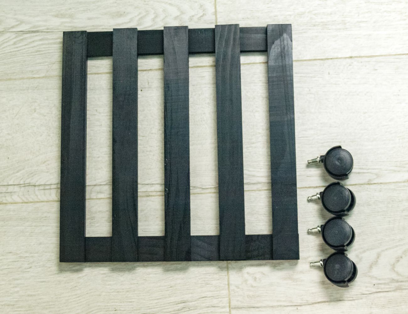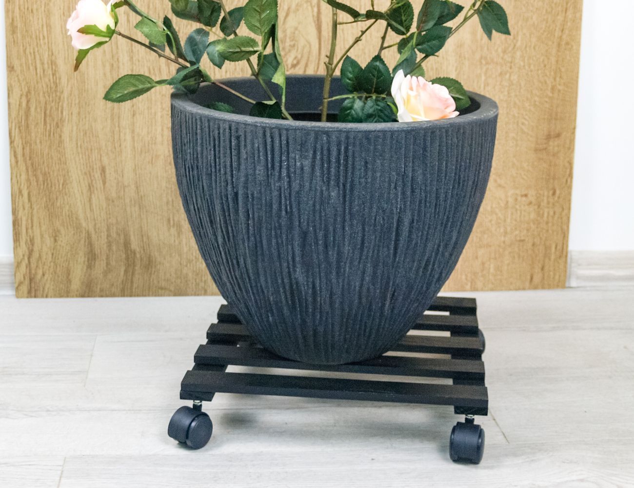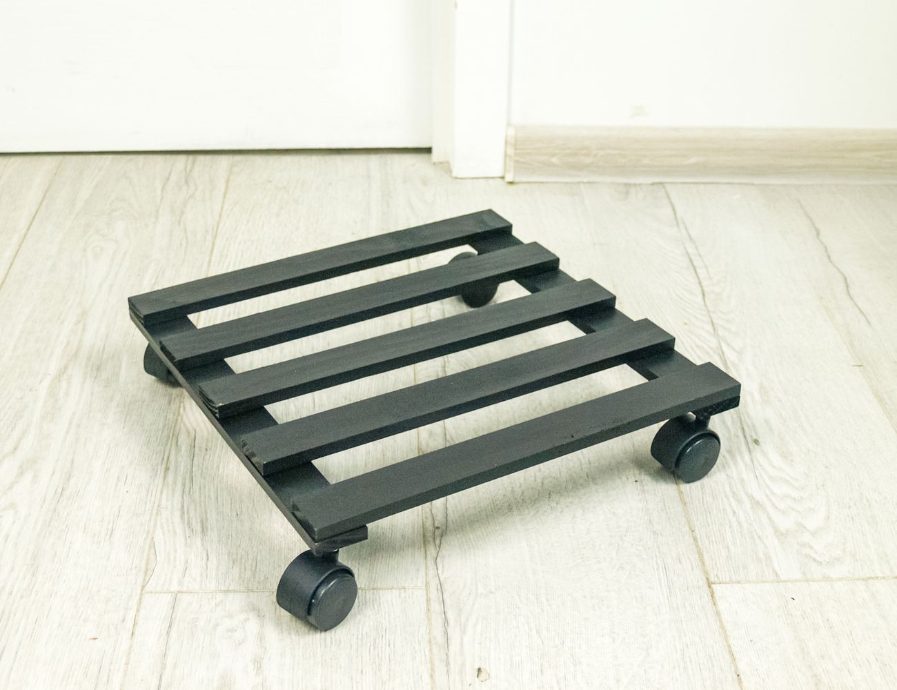 Подставка для цветов ПИНО НЕРО: КВАДРАТ, на колёсиках, дерево, 35 см