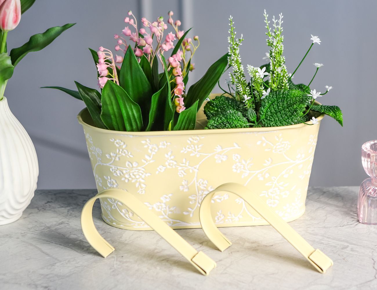 Товары для дачи и сада. Подвесное кашпо для балкона ЛЕТНЯЯ АКВАРЕЛЬ кремовое, металлическое, 28х14 см 802315-1. IntexCorp - интернет магазин.