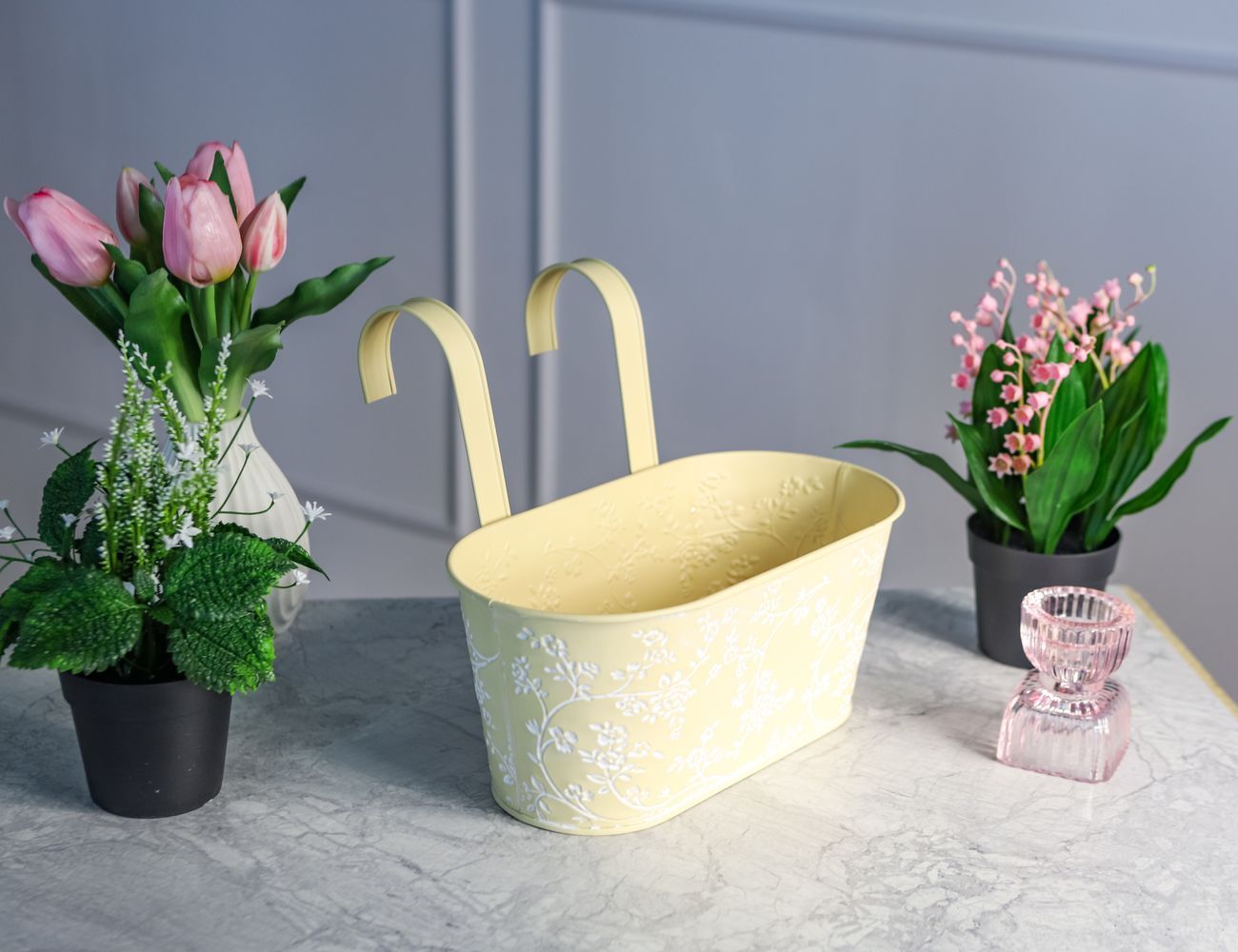Подвесное кашпо для балкона ЛЕТНЯЯ АКВАРЕЛЬ кремовое, металлическое, 28х14 см