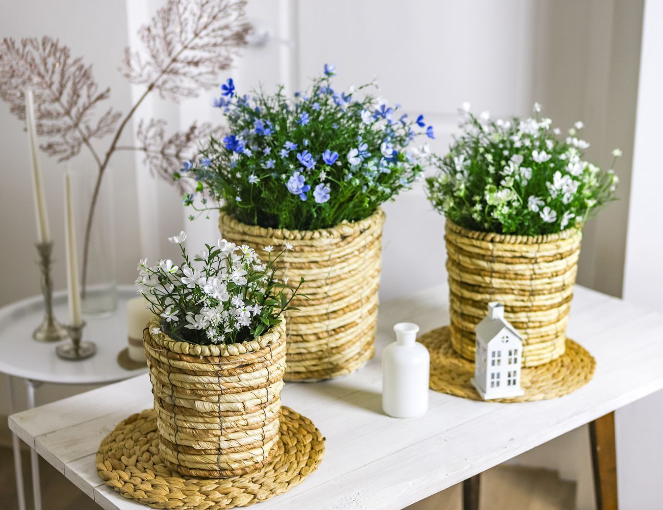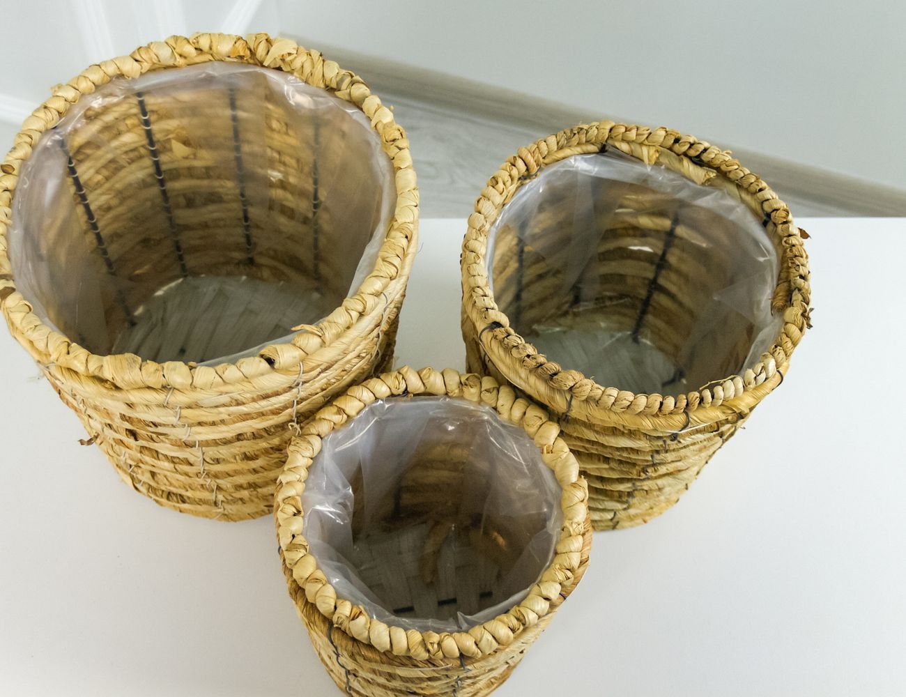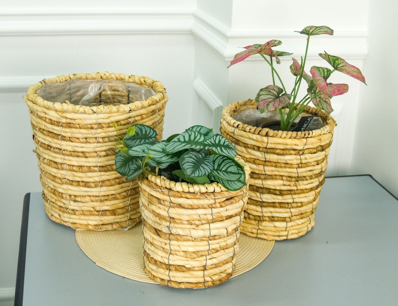 Набор кашпо - современное и очень трендовое решение в оформлении комнатных растений. Такие кашпо визуально объединяют интерьер, гармонизируют его. Каждое кашпо сплетено из скрученных и надёжно скрепленных между собой кукурузных листьев - экологичного природного материала, а чтобы вы не переживали за сохранность мебели и подоконников при поливе растений, внутри кашпо выстелены специальной плёнкой. Лёгкие и очень симпатичные кашпо станут отличным обрамлением для ваших комнатных растений.