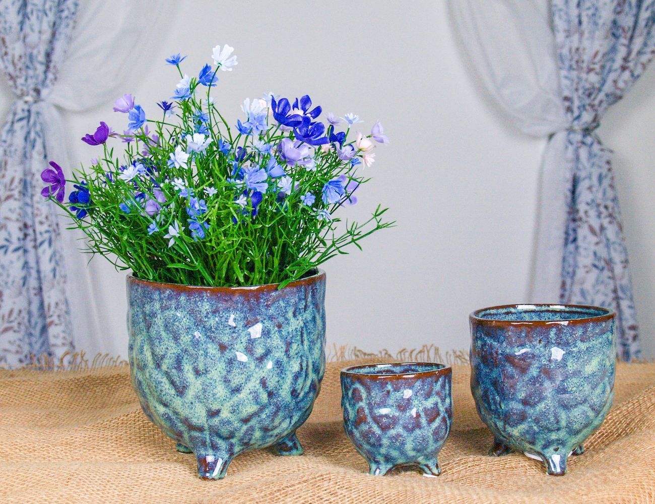 Набор керамических кашпо МОРСКАЯ СЮИТА, 7-14 см, 3 шт.