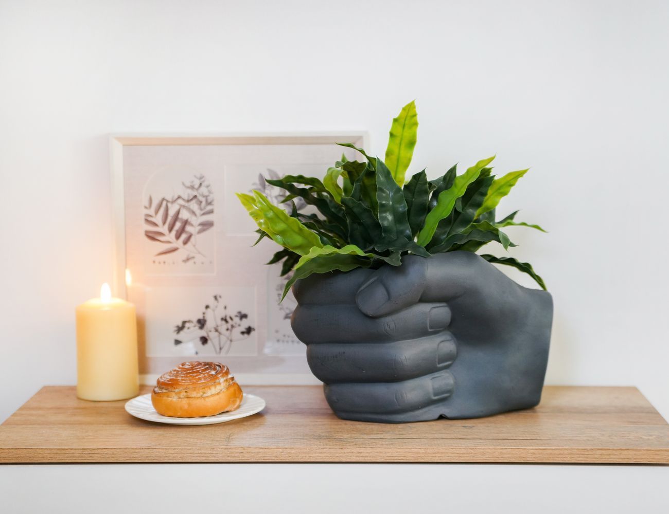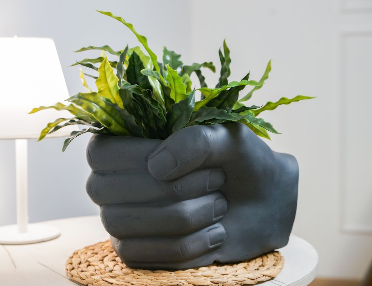 Бывают растения, которые выглядят такими трогательно хрупкими, что прямо хочется их защитить от нашего сурового внешнего мира, вот именно для них и создано это необычное серое кашпо - надёжная рука убережёт ваших зелёных питомцев от всех невзгод, а заодно и роль оригинального декора выполнит!