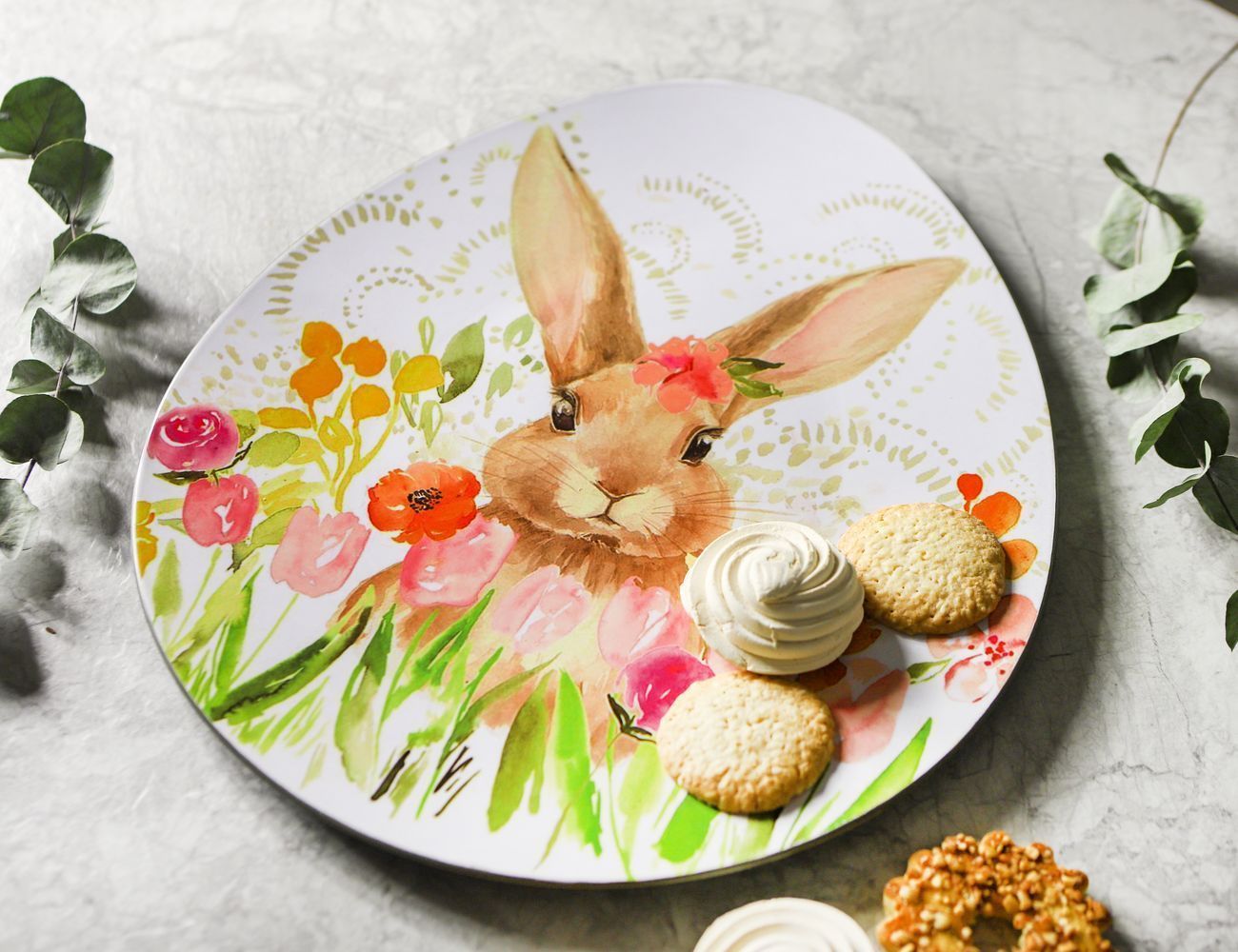 Ну как же было художнику удержаться и не написать портрет столь симпатичной крольчихи, которую встретил, гуляя по цветущему лугу? Ушастая кокетка просто пленяет своим очарованием! Конечно же, блюдо с таким милым изображением станет замечательным элементом пасхального декора и сервировки, да и просто будет вызывать улыбку умиления в любой день, в любое время года!