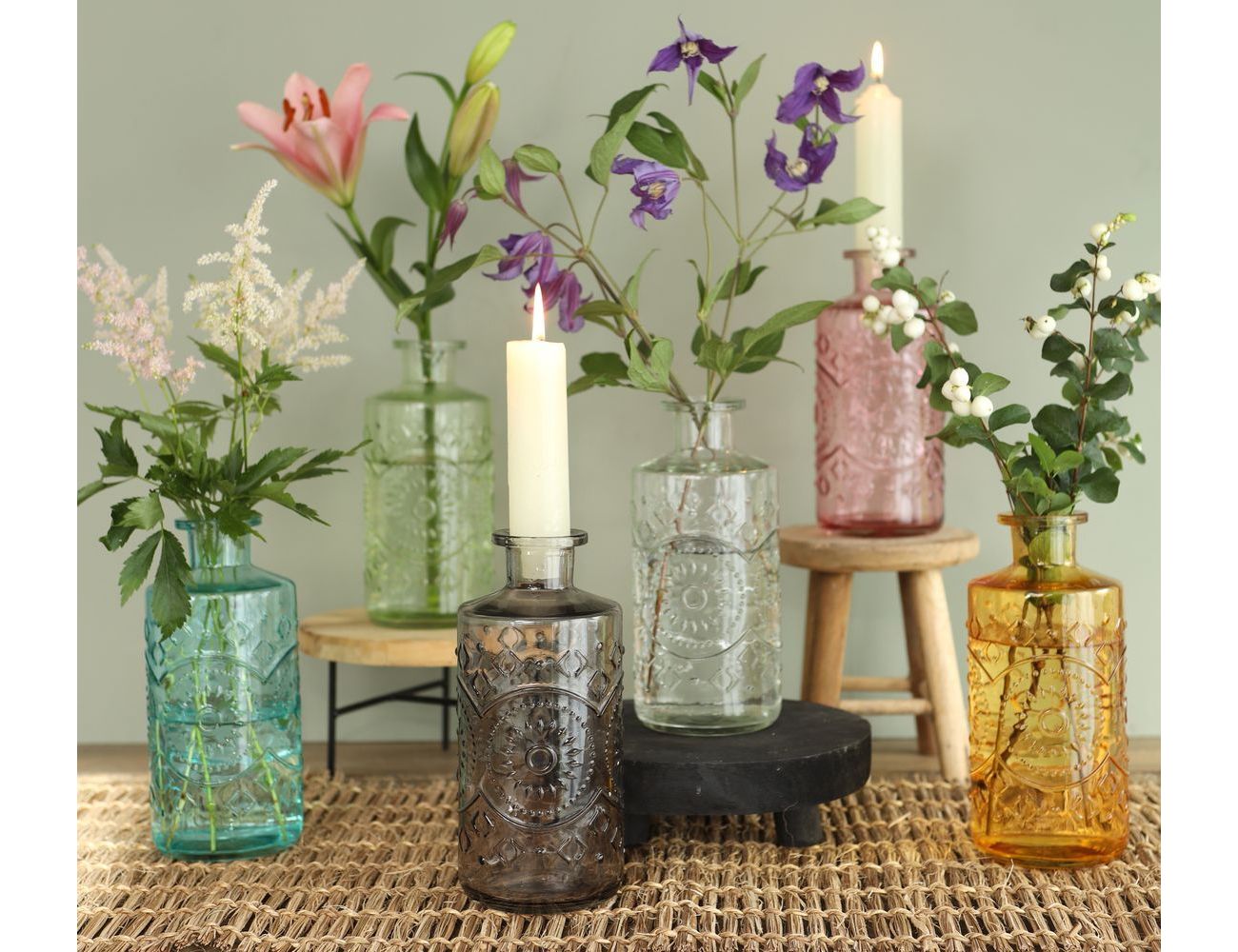 Товары для дачи и сада. Стеклянная ваза-бутыль ДЖЕРГ - АЛЕКСАНДРИТОВЫЕ СУМЕРКИ, серая, 21 см 29766. IntexCorp - интернет магазин.