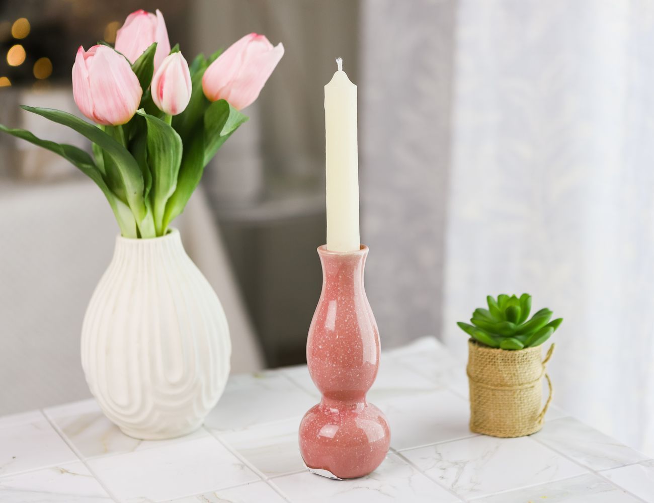 Керамическая ваза-подсвечник УИДДИ, пудрово-розовая, 15 см