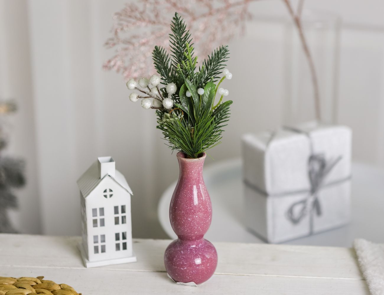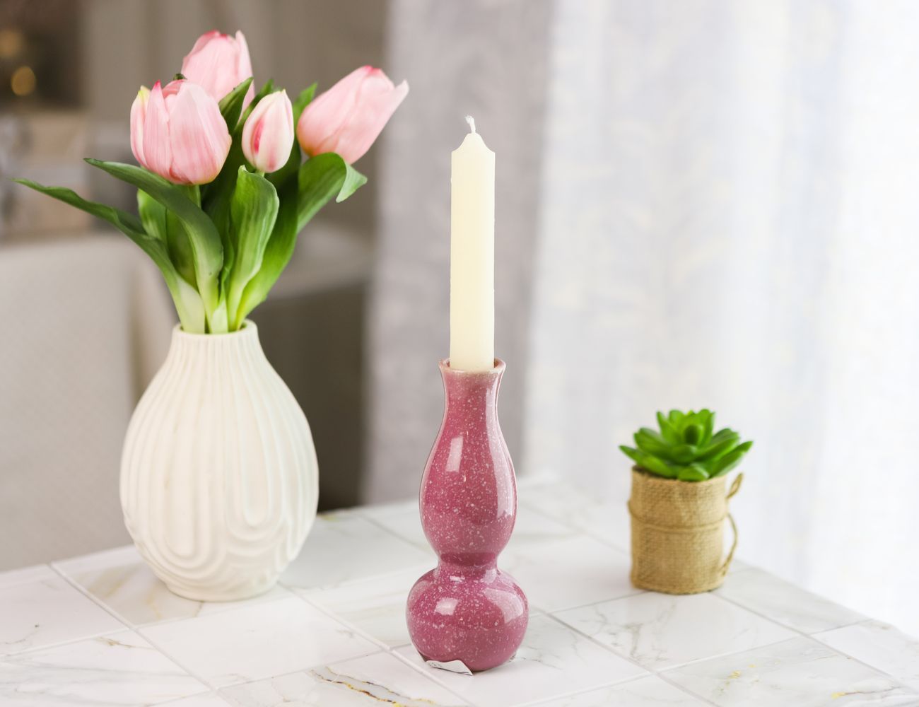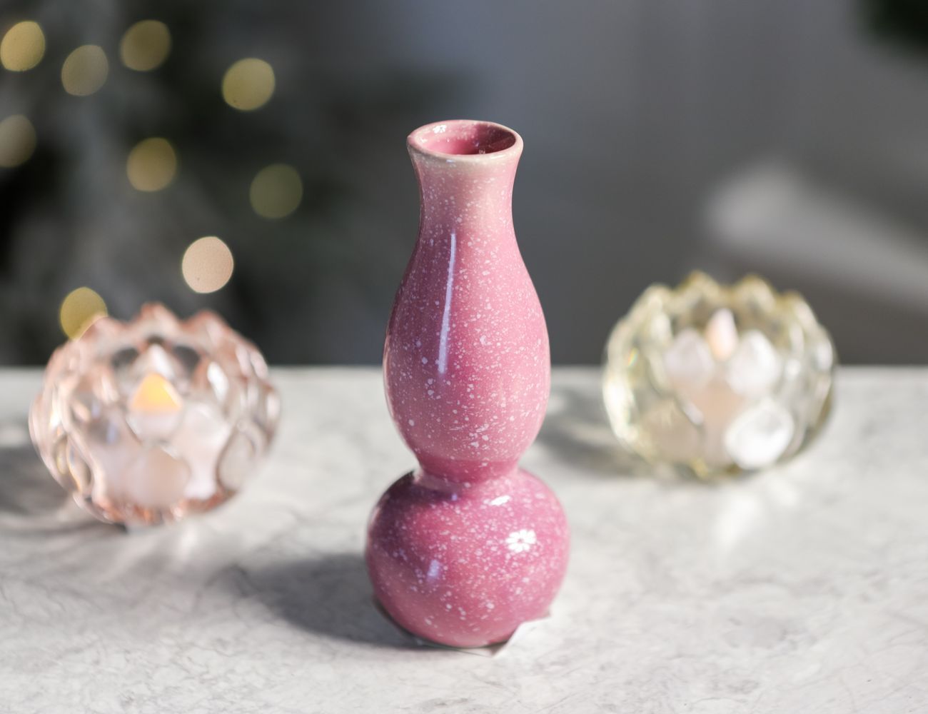 Керамическая ваза-подсвечник УИДДИ, нежно-розовая, 15 см