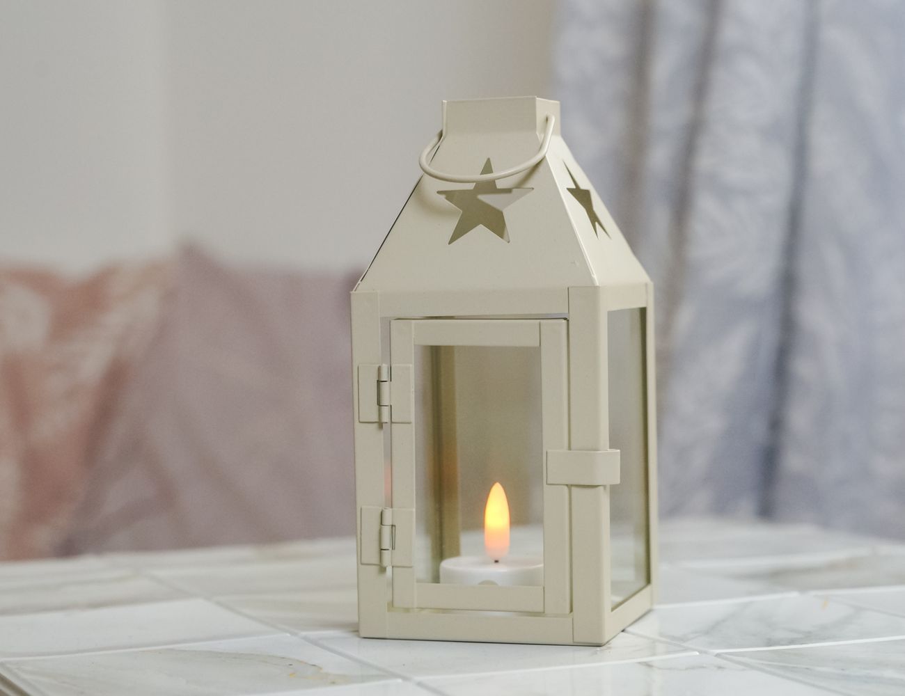 Декоративный подсвечник-фонарь СКОНС, металл, кремовый, 17х8 см