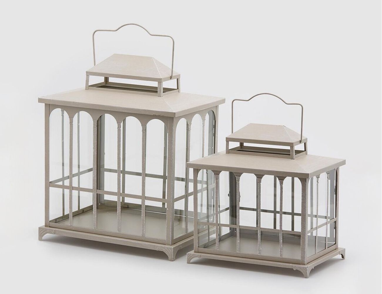 Товары для дачи и сада. Набор подсвечников-фонарей ПАЛАЦЦО, металл, стекло, светло-серый, 28 и 40 см, 2 шт. 601093-97. IntexCorp - интернет магазин.