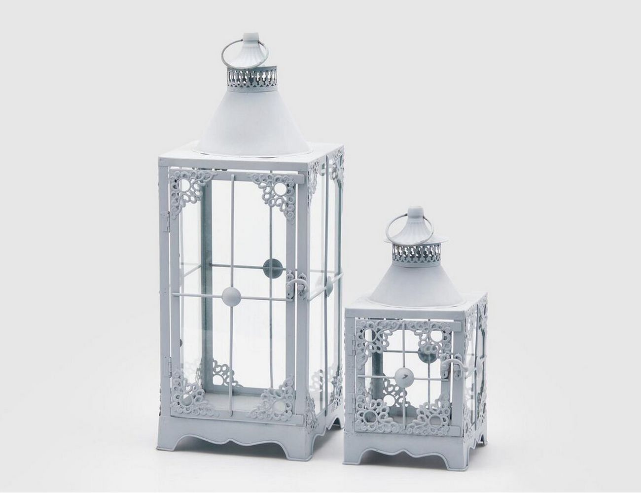 Набор подсвечников-фонарей ПАЙСЛИ, металл, стекло, светло-серый, 30 и 50 см, 2 шт.