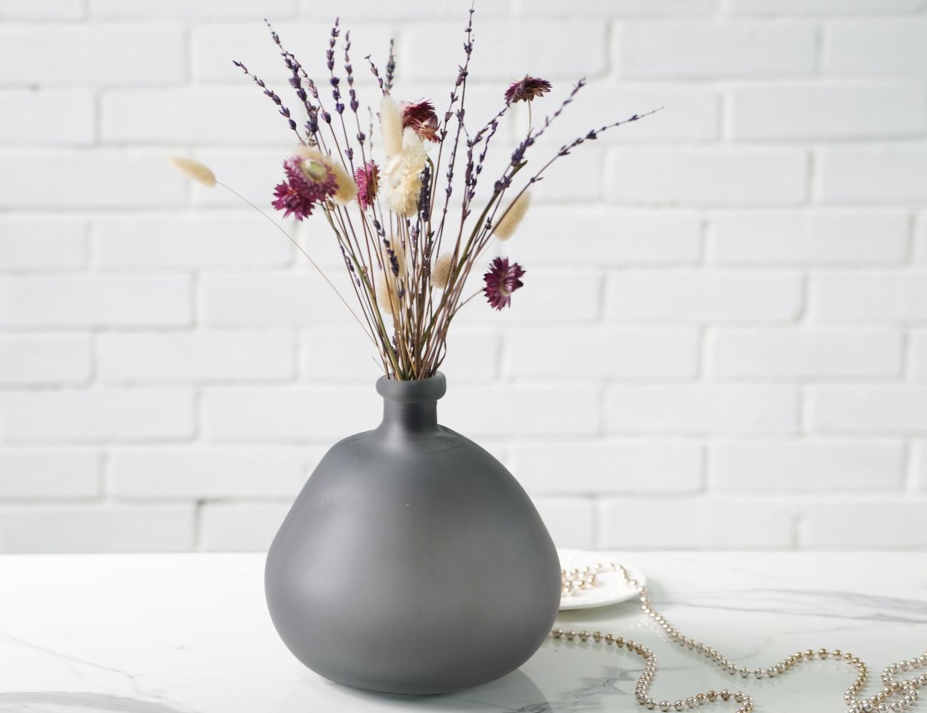 Товары для дачи и сада. Ваза-бутыль МАТТИ округлая, стекло, матовая, серая, 23 см 869836. IntexCorp - интернет магазин.