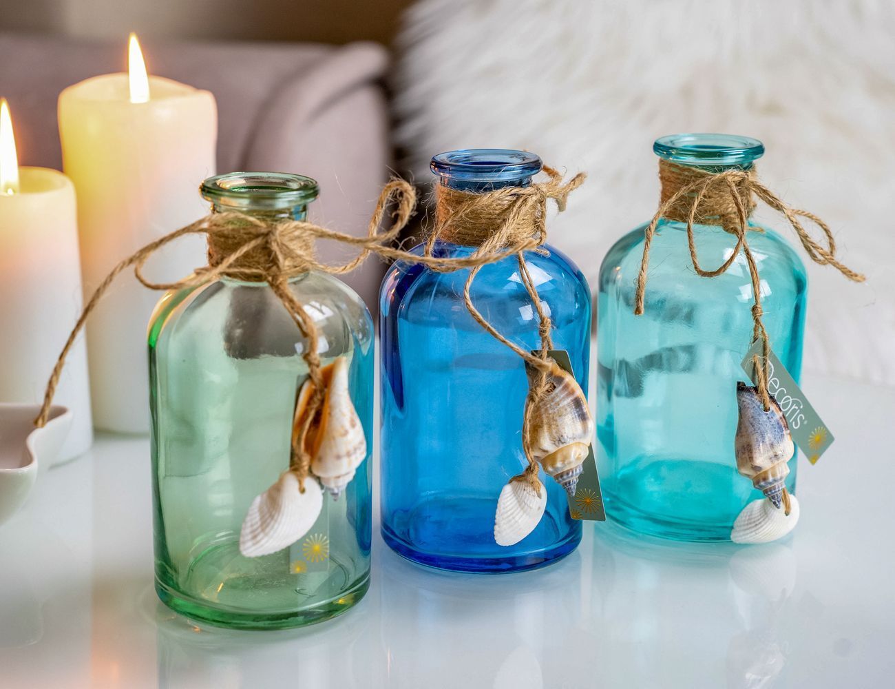 Набор декоративных вазочек МОРСКОЕ ТРИО, стекло, 13 см, 3 шт.
