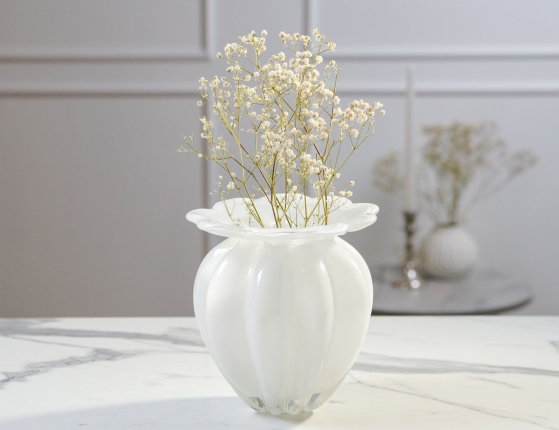 Декоративная ваза ЛЕТТИ, стекло, белая, 18 см