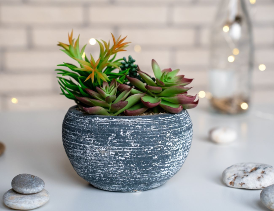 Искусственные растения в кашпо КОНКРИТ-СУККУЛЕНТЫ - 3, 17х13 см