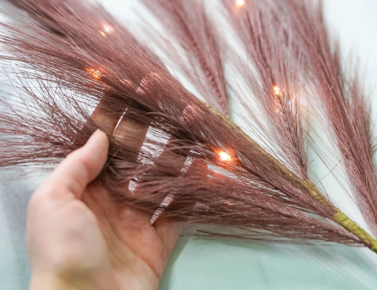 Славные тёплые светлячки спрятались в нежных, шелковистых перьях шоколадного оттенка, и получилась удивительная декоративная ветка 'Плюмаж-Кокетти', которая будет очень романтично и эффектно смотреться как сама по себе, так и в стильной композиции, которую можно составить в высокой вазе!