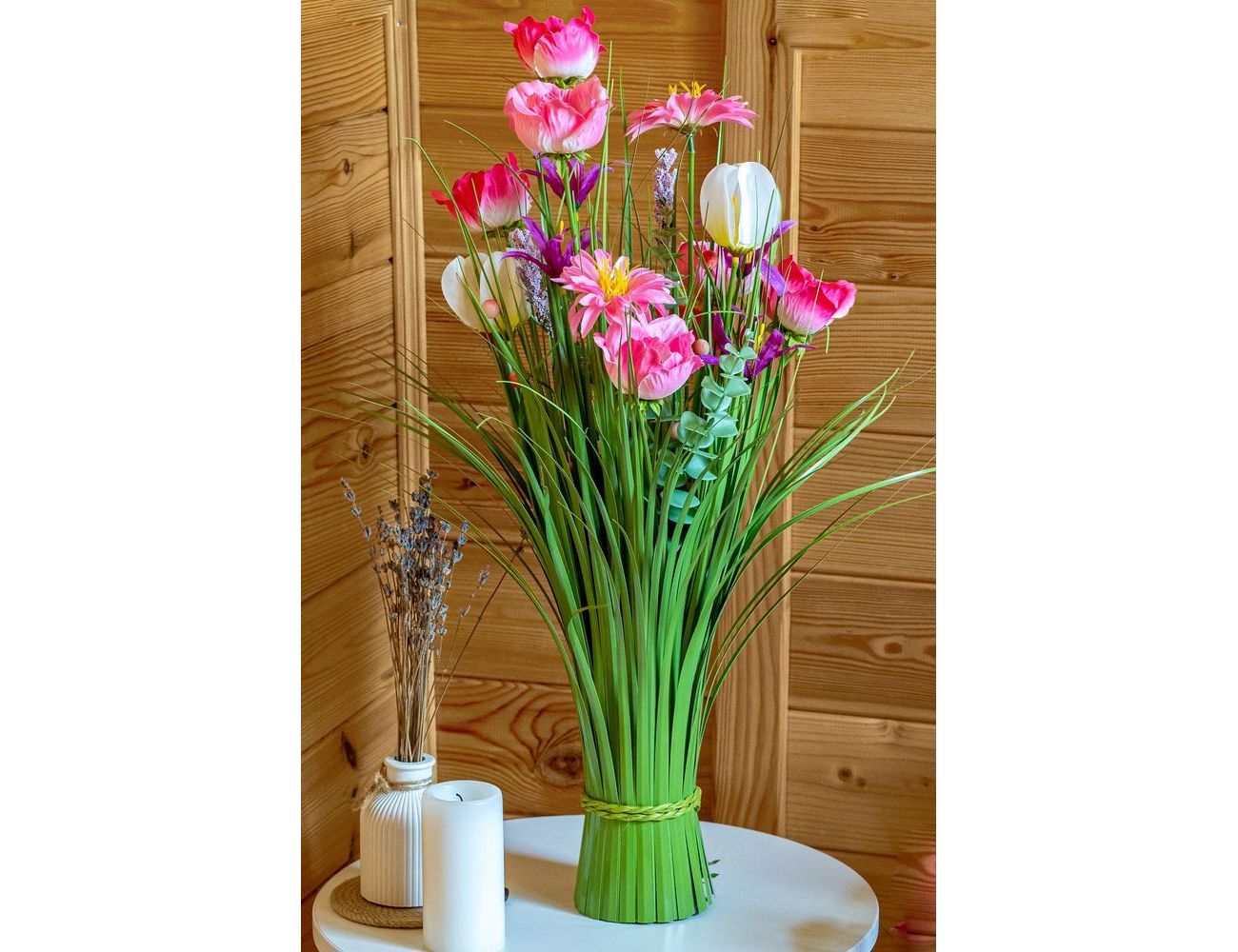 Любые цветы и любые композиции из них прекрасны, ведь нет творений красивее тех, что созданы самой природой! И как здорово, что человек научился воссоздавать природную красоту: нежные тюльпаны и трепетные ромашки, лютики и травы, нежно-розовые и сочно-зелёные - все они, собранные в великолепный букет, изо дня в день будут дарить вам солнечное летнее настроение, несмотря ни на какие капризы погоды! Подарите себе лето!
