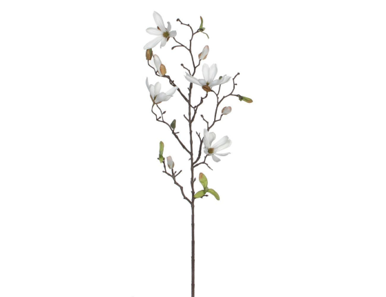 Декоративная ветка РАННЯЯ МАГНОЛИЯ, текстиль, белая, 75 см