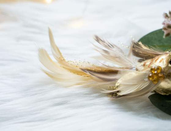 Украшение ДРАГОЦЕННАЯ ПТИЧКА на клипсе, золотая, перо, 15 см