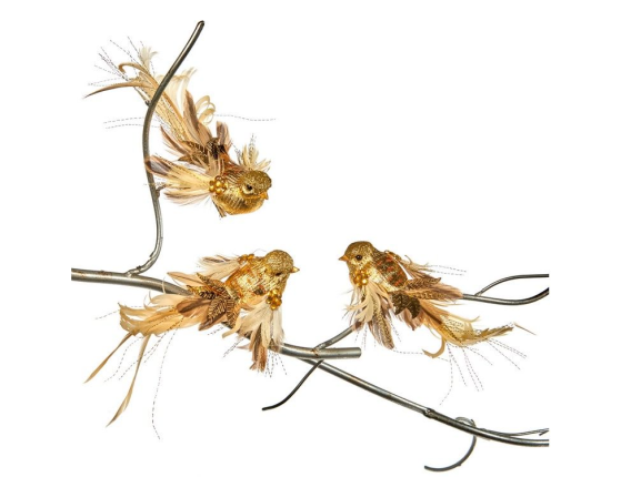 Пасхальная коллекция. Украшение ДРАГОЦЕННАЯ ПТИЧКА на клипсе, золотая, перо, 15 см MC39815. IntexCorp - интернет магазин.