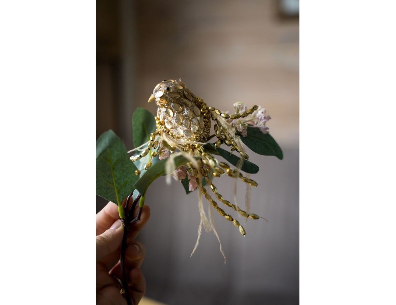 Пасхальная коллекция. Украшение ПТИЦА ДЖОЭЛЛО на клипсе, перо, акрил, золотая, 18 см 520949. IntexCorp - интернет магазин.
